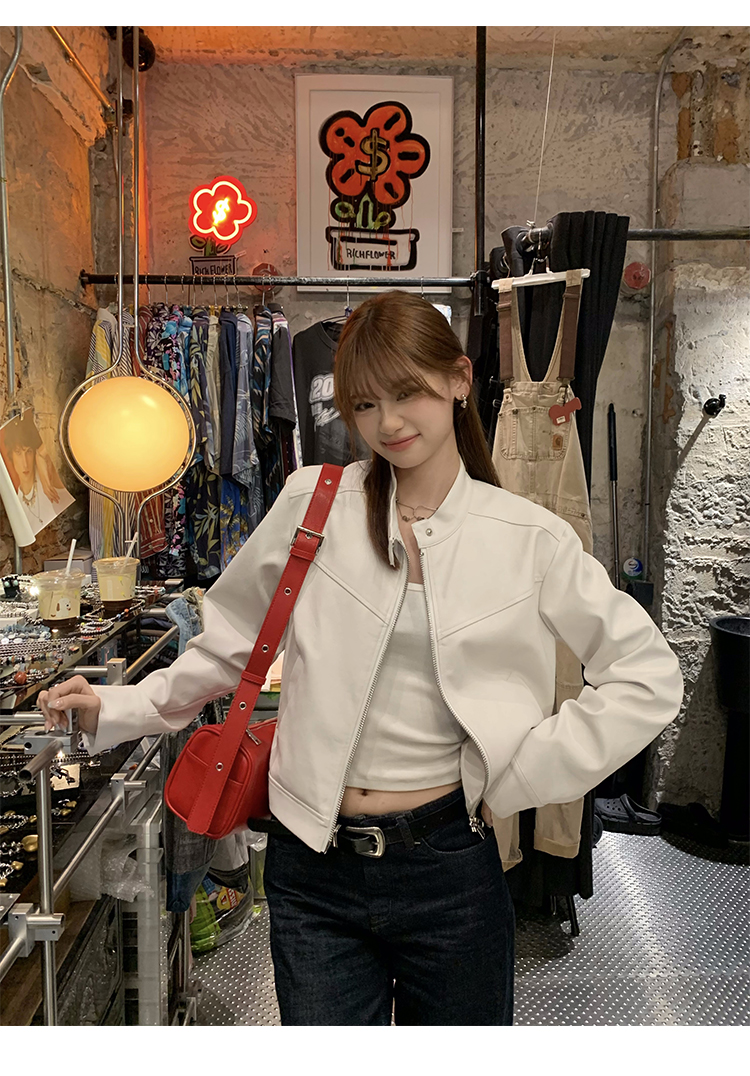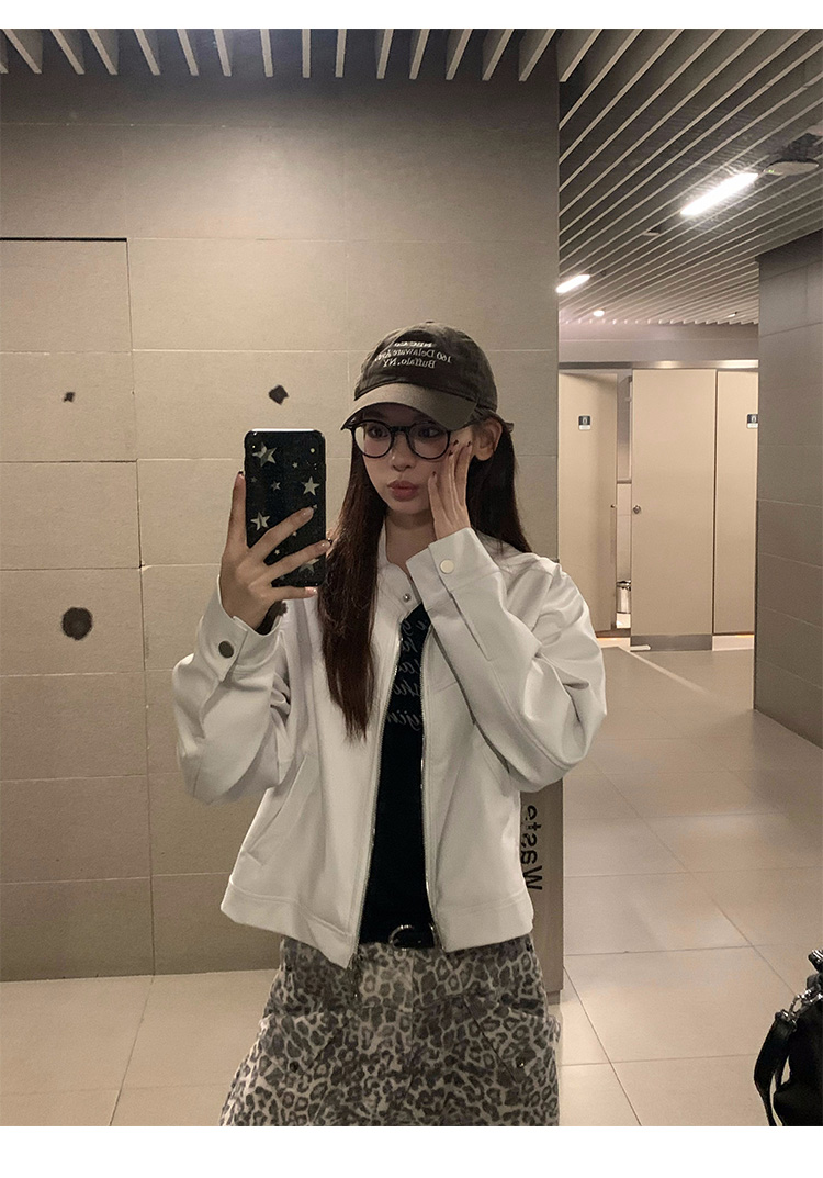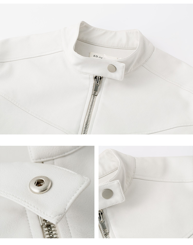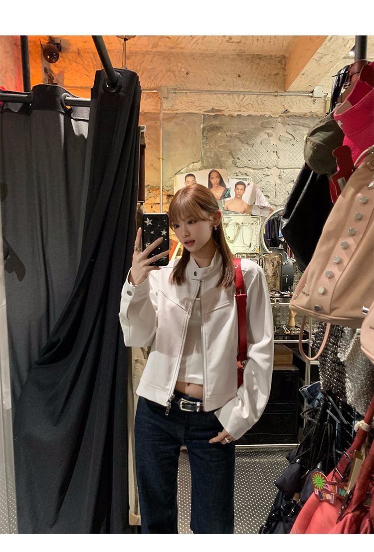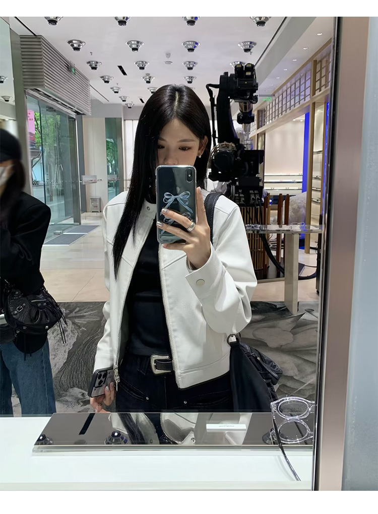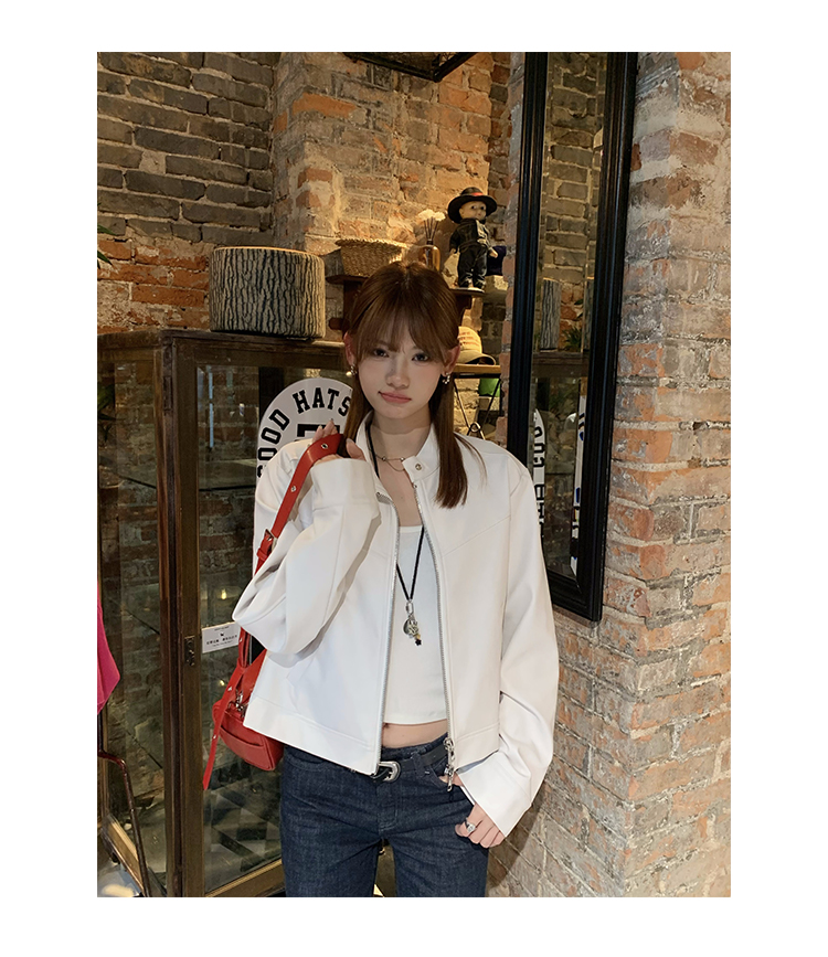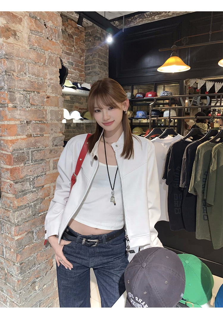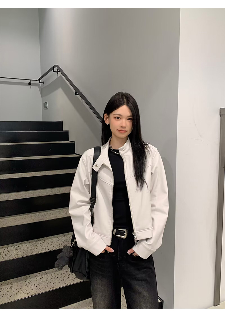 Big Ears Lumoder White Leather Jacket for Women, Spring and Autumn Thin Style, Niche Design, Loose Casual Korean Style Short Coat