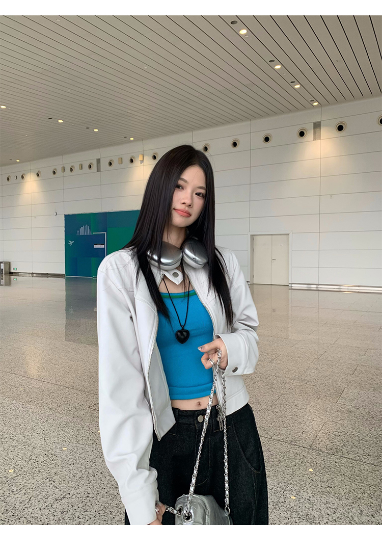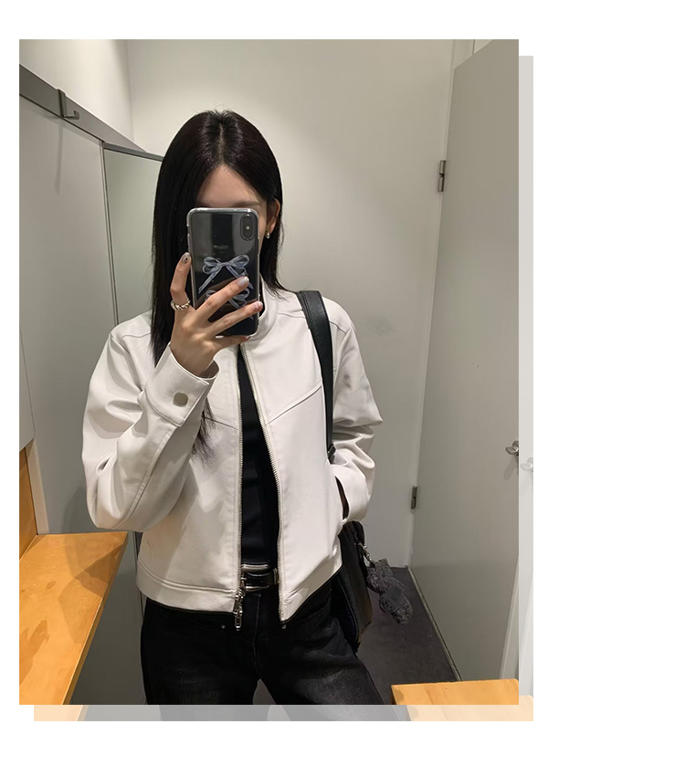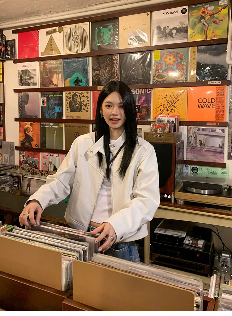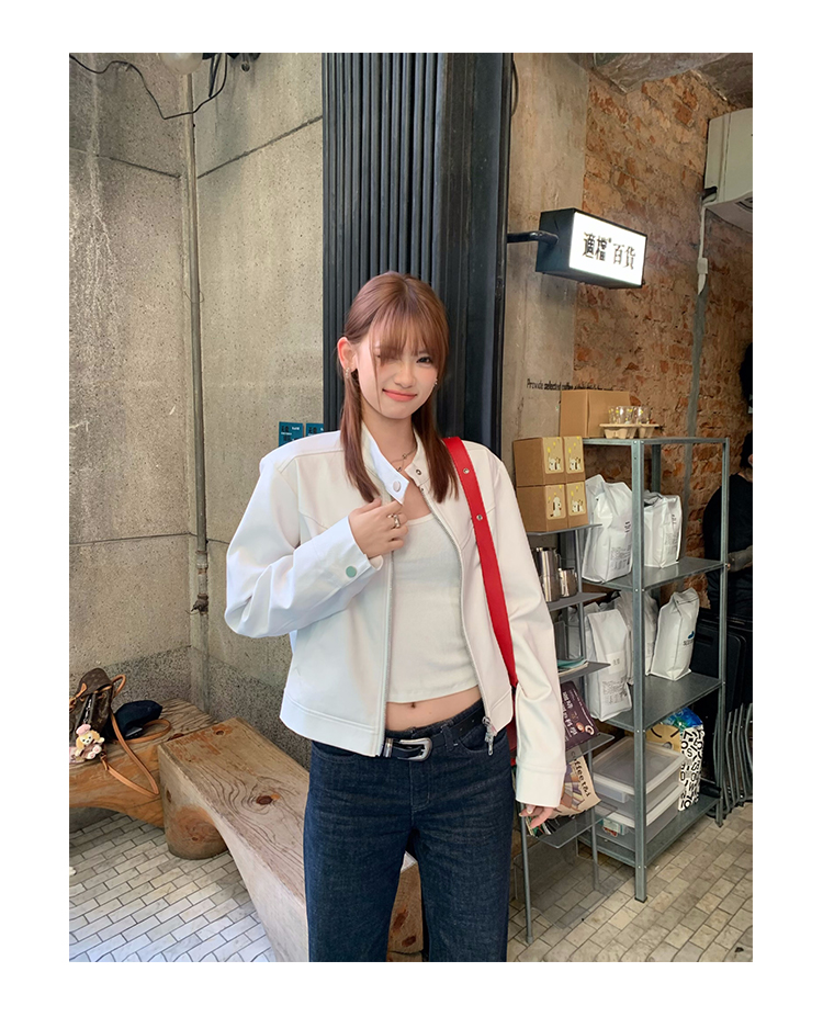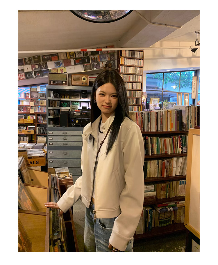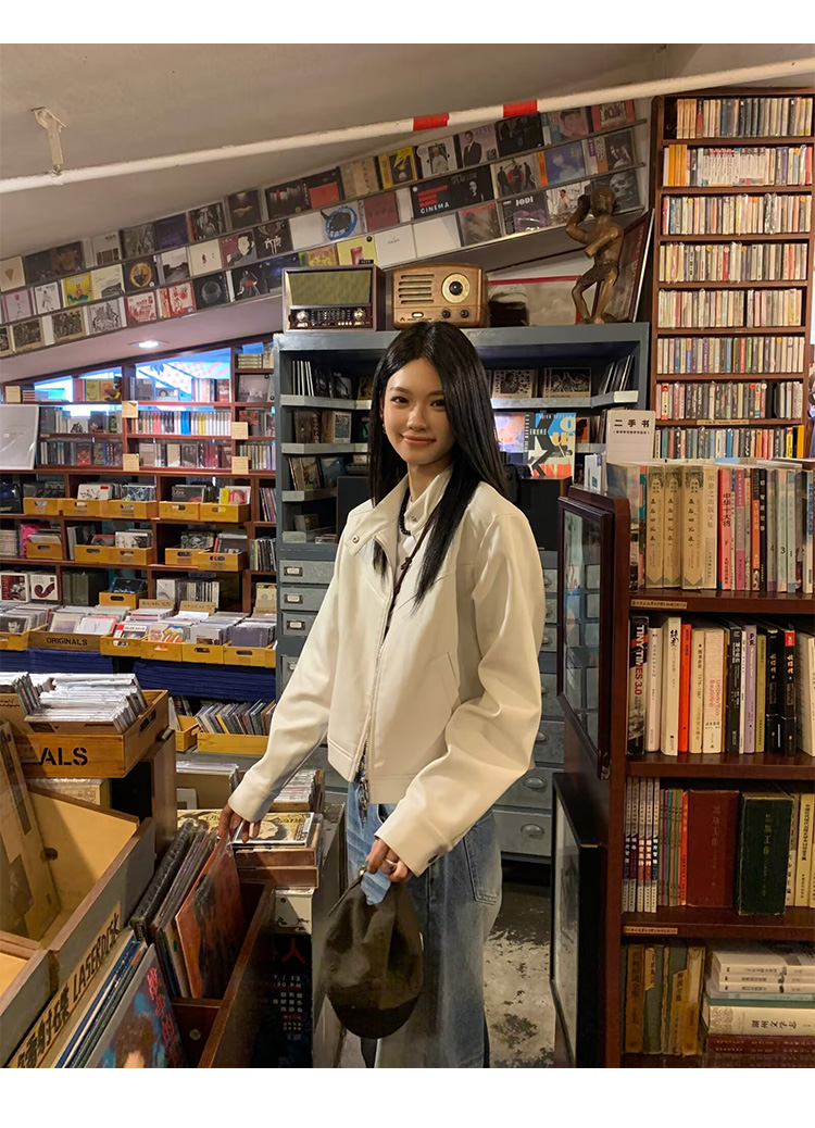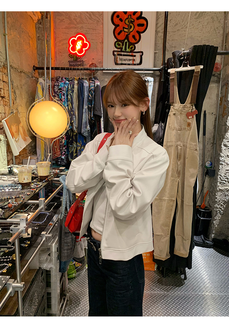 Big Ears Lumoder White Leather Jacket for Women, Spring and Autumn Thin Style, Niche Design, Loose Casual Korean Style Short Coat