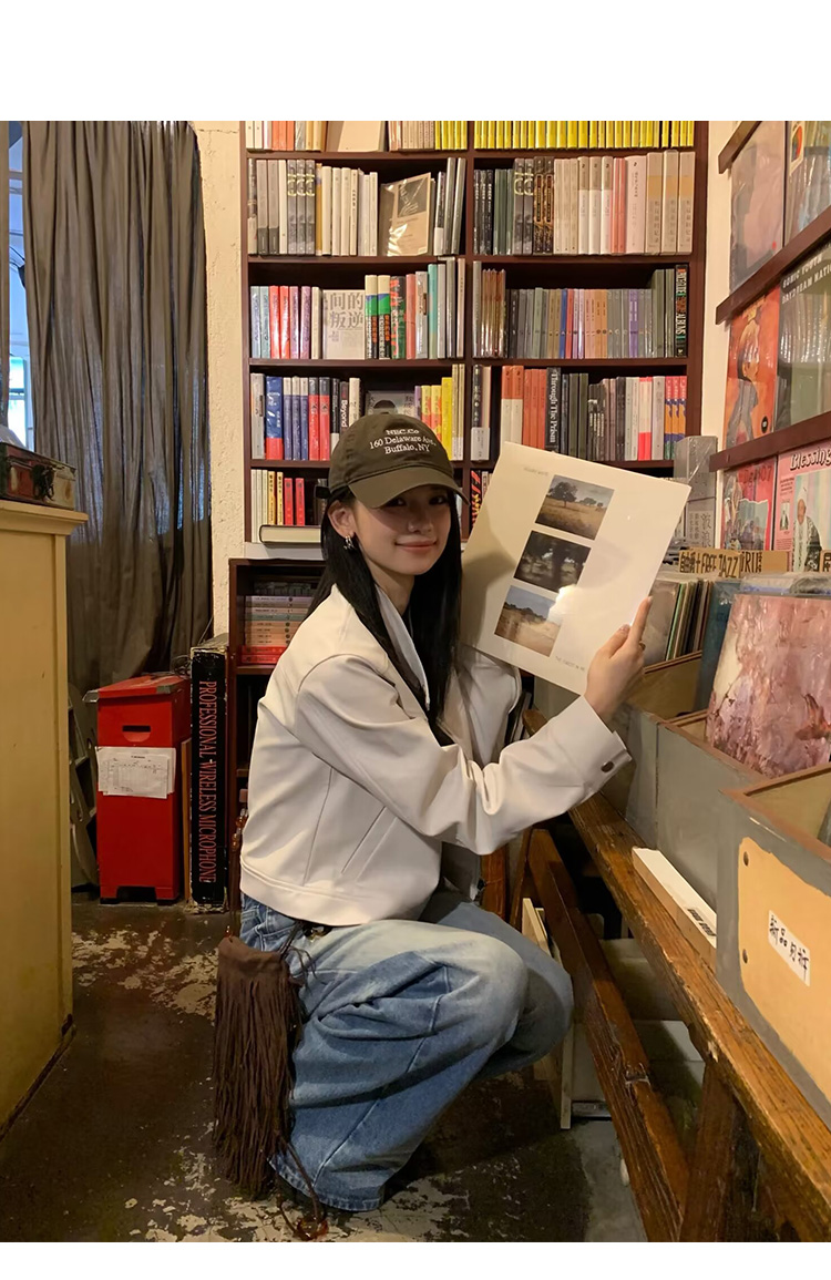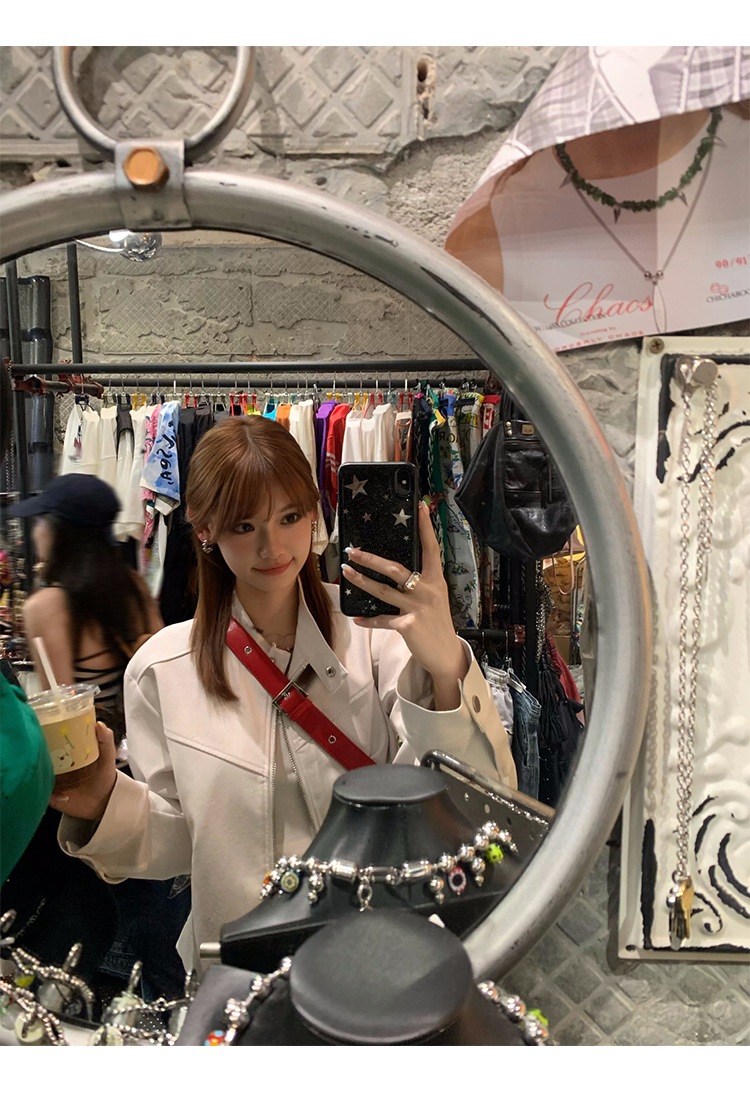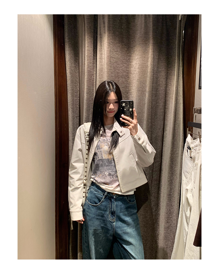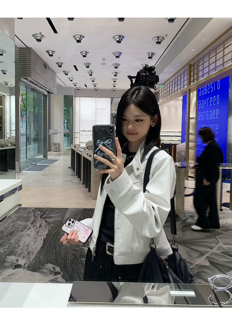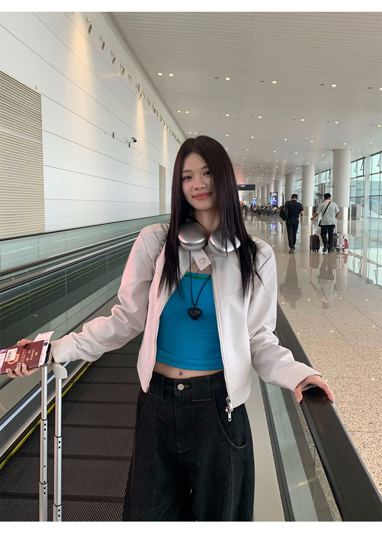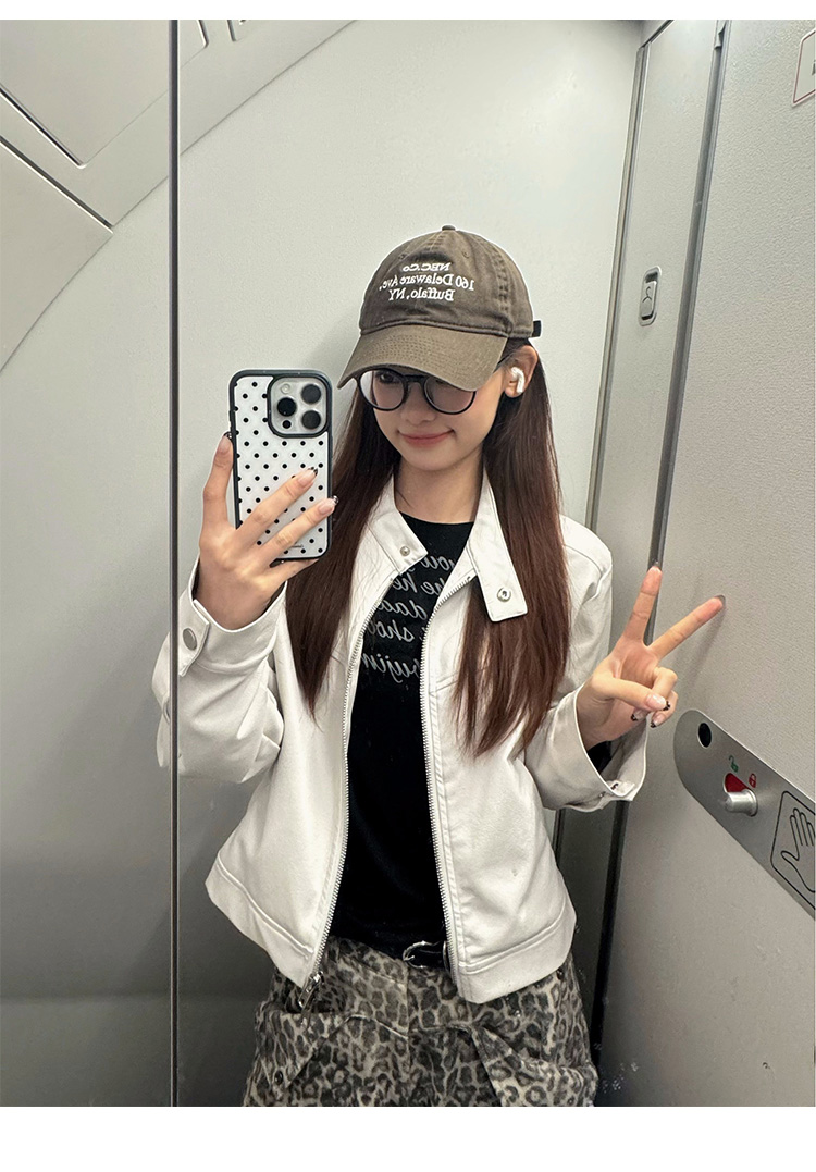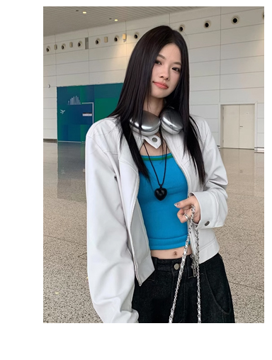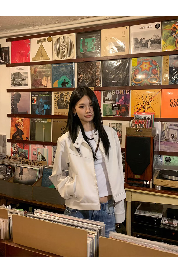 Big Ears Lumoder White Leather Jacket for Women, Spring and Autumn Thin Style, Niche Design, Loose Casual Korean Style Short Coat