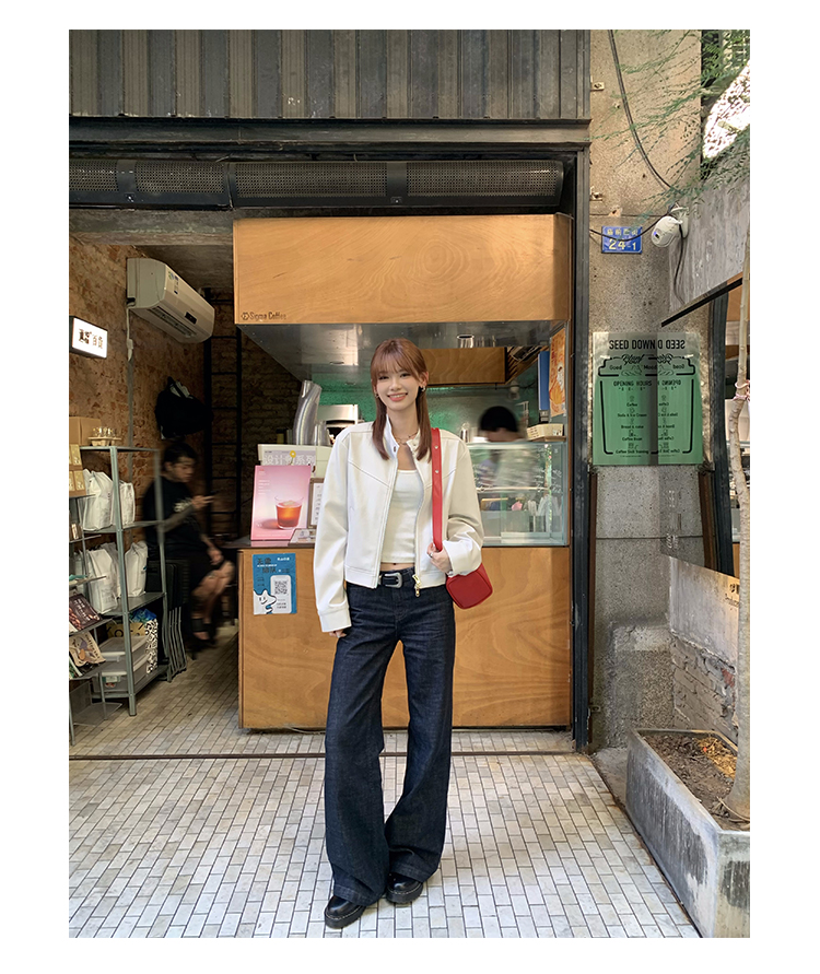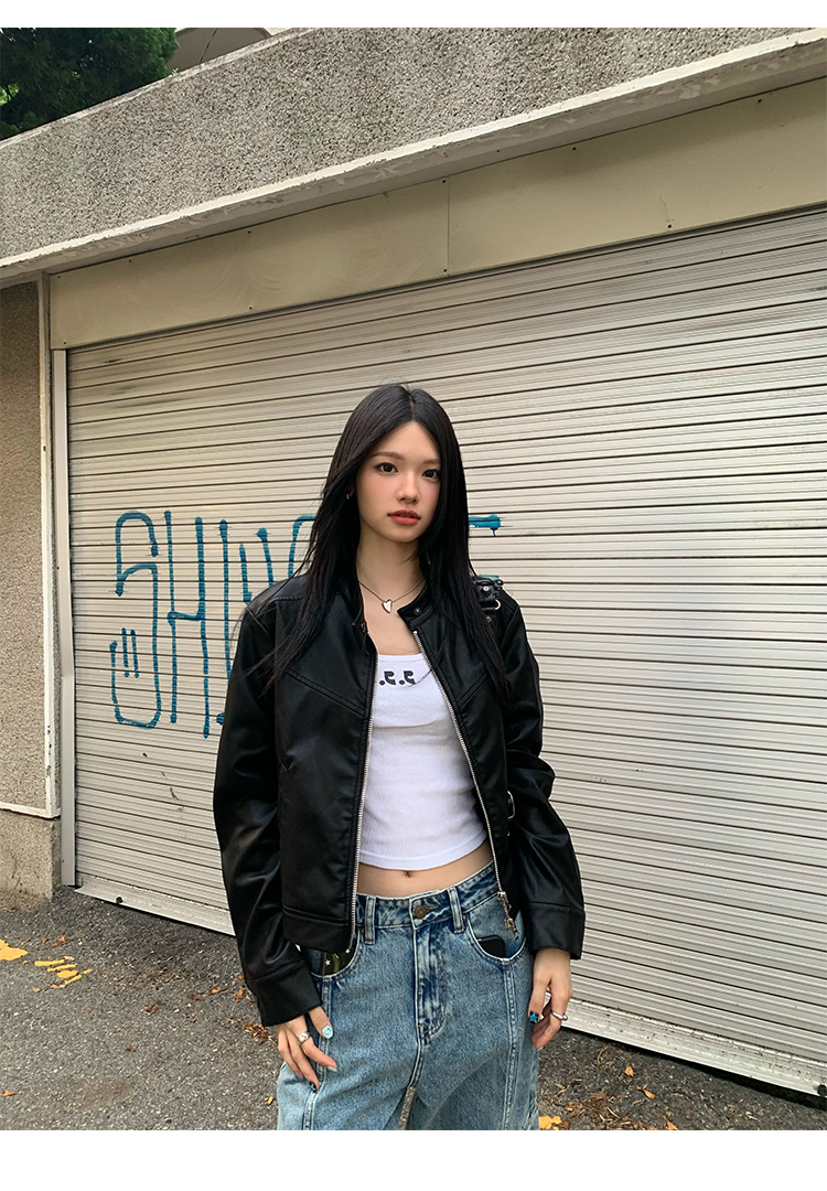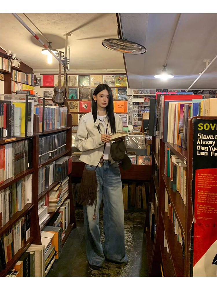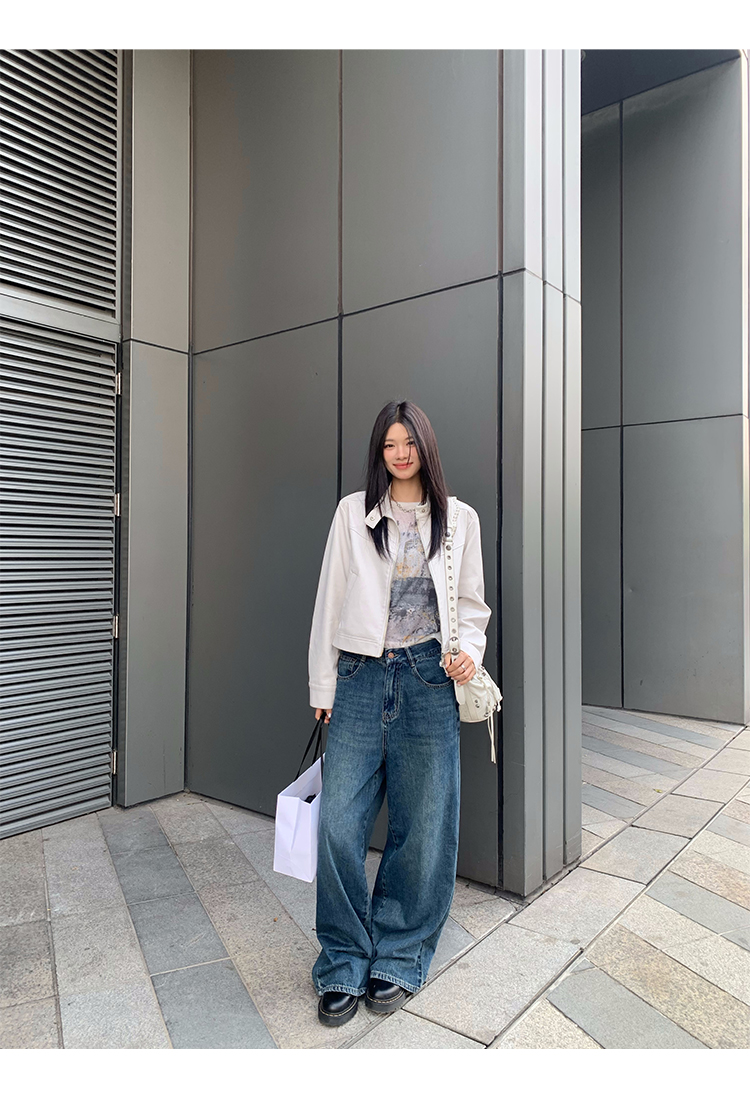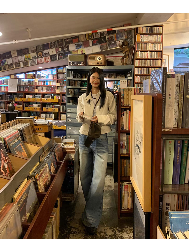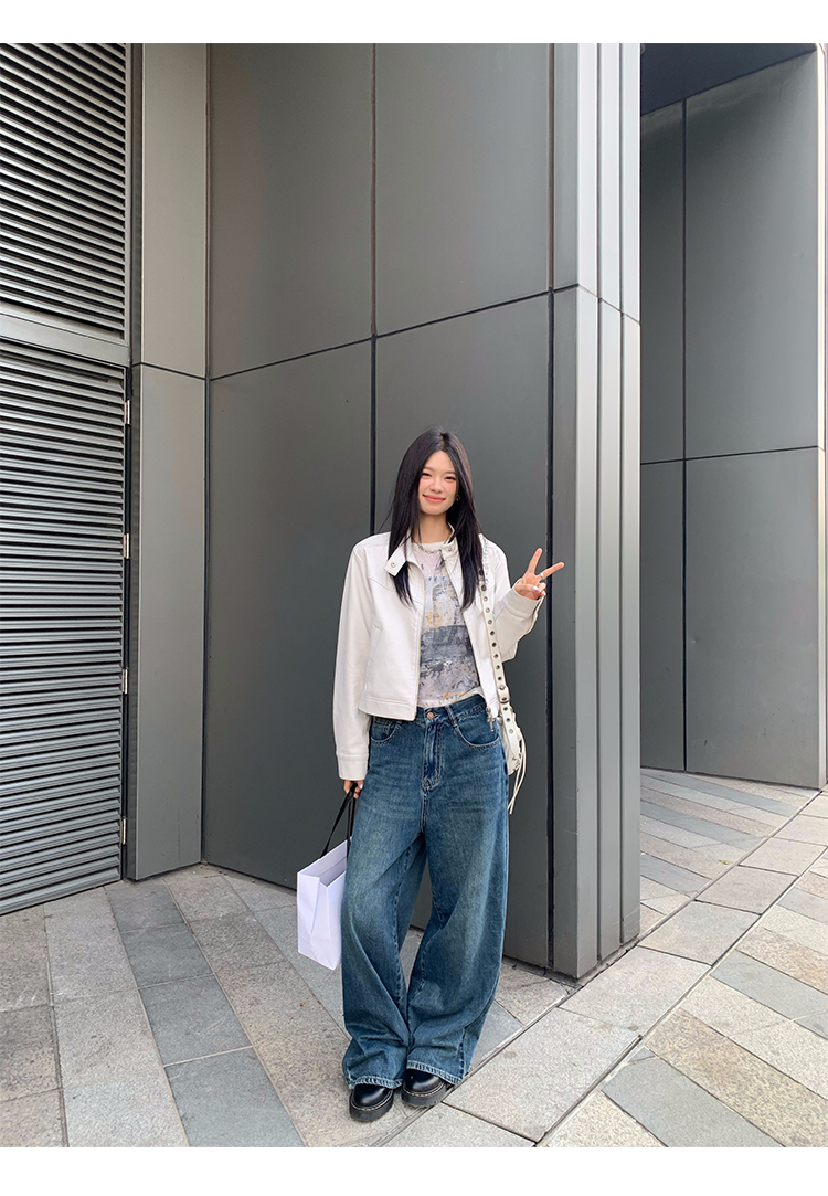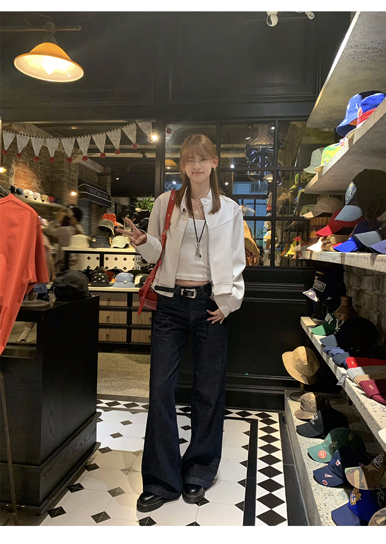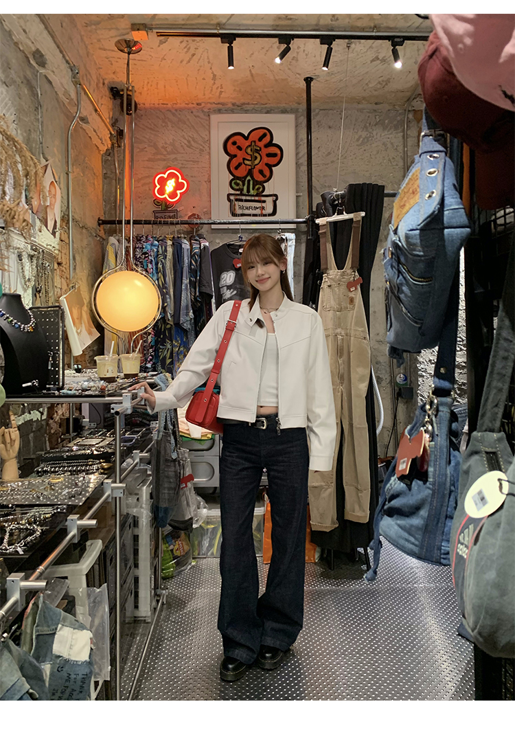 Big Ears Lumoder White Leather Jacket for Women, Spring and Autumn Thin Style, Niche Design, Loose Casual Korean Style Short Coat