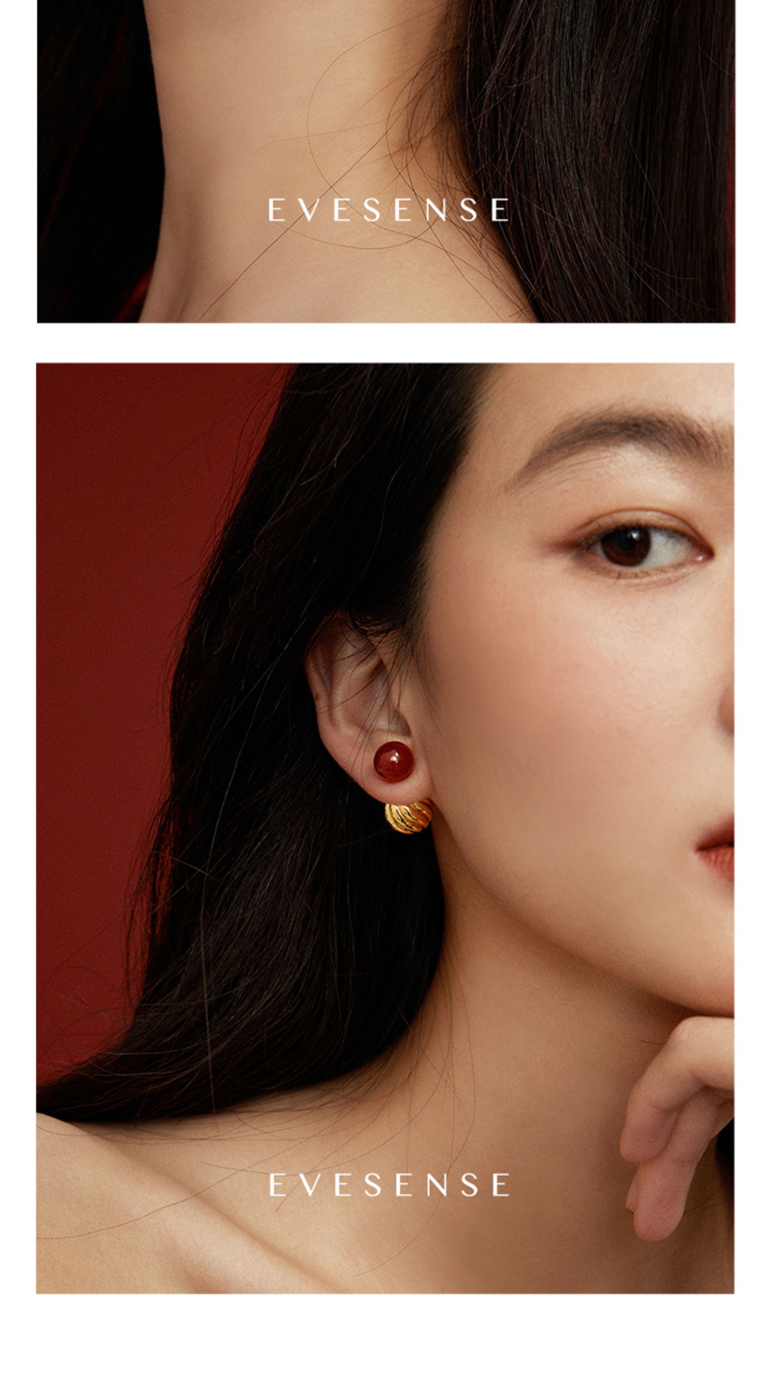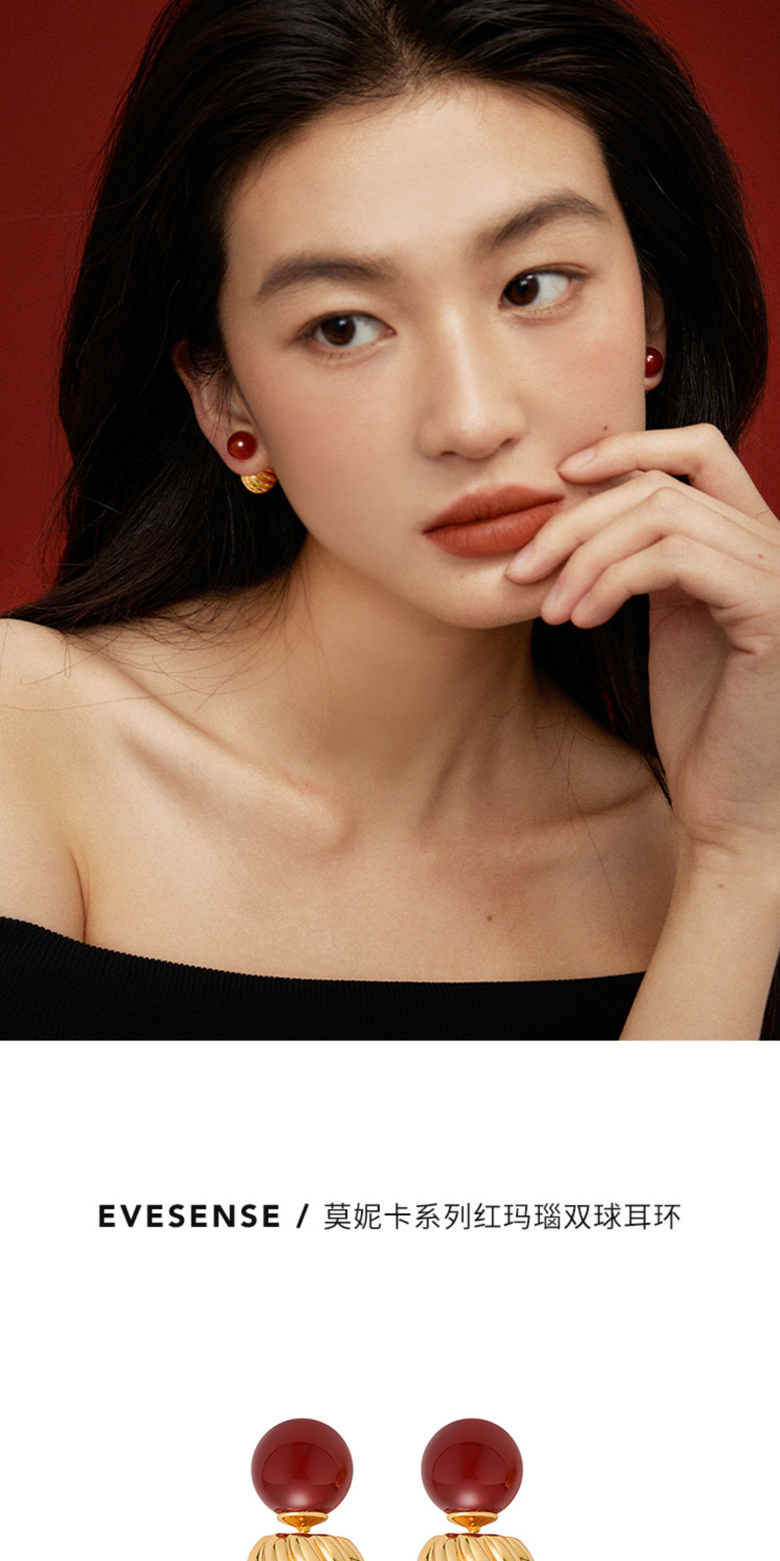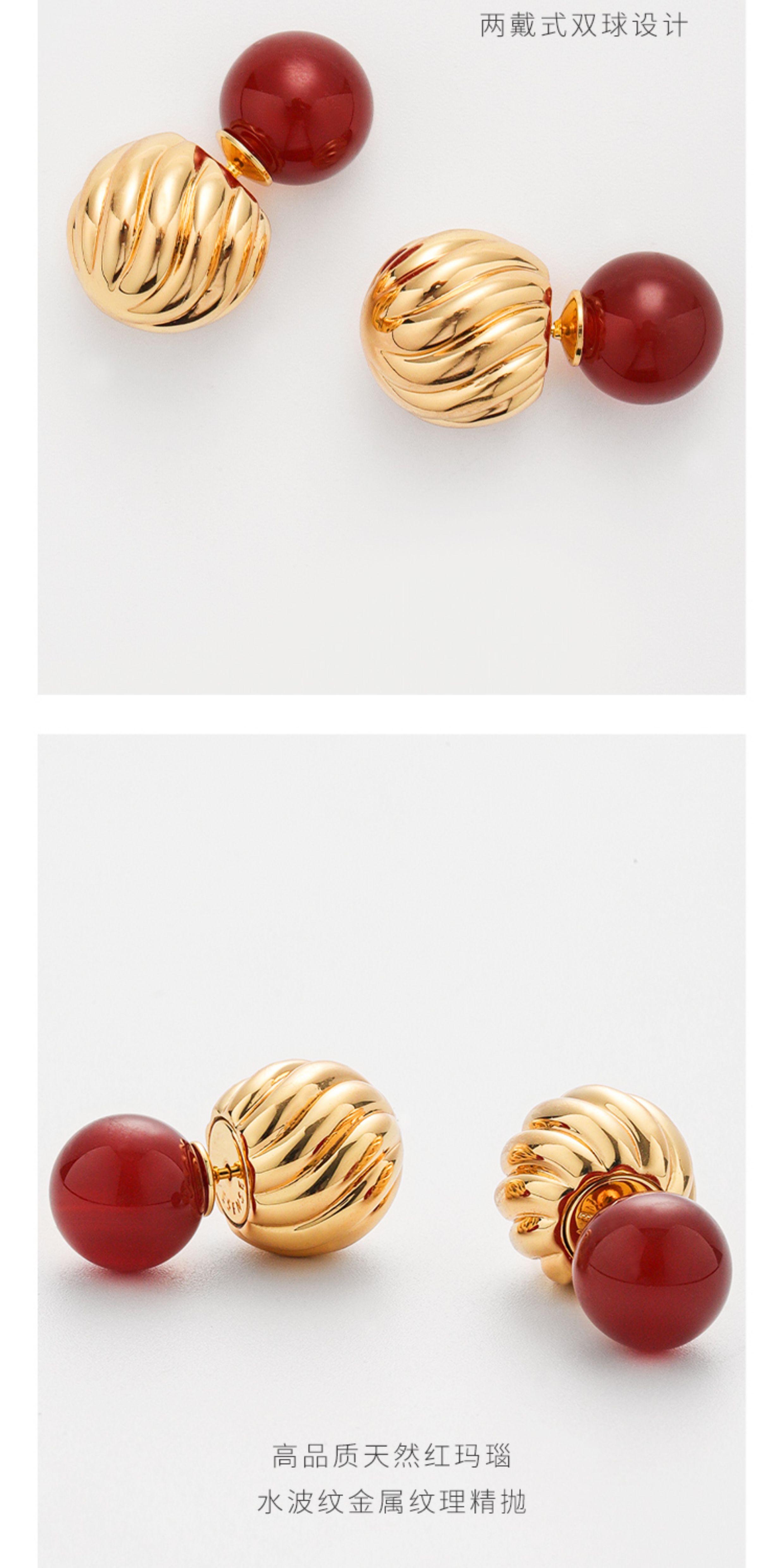 Evesense Monica Series Red Agate Double Ball Earrings, High-End Retro Two-Wear Style, Accessible Luxury New Earrings