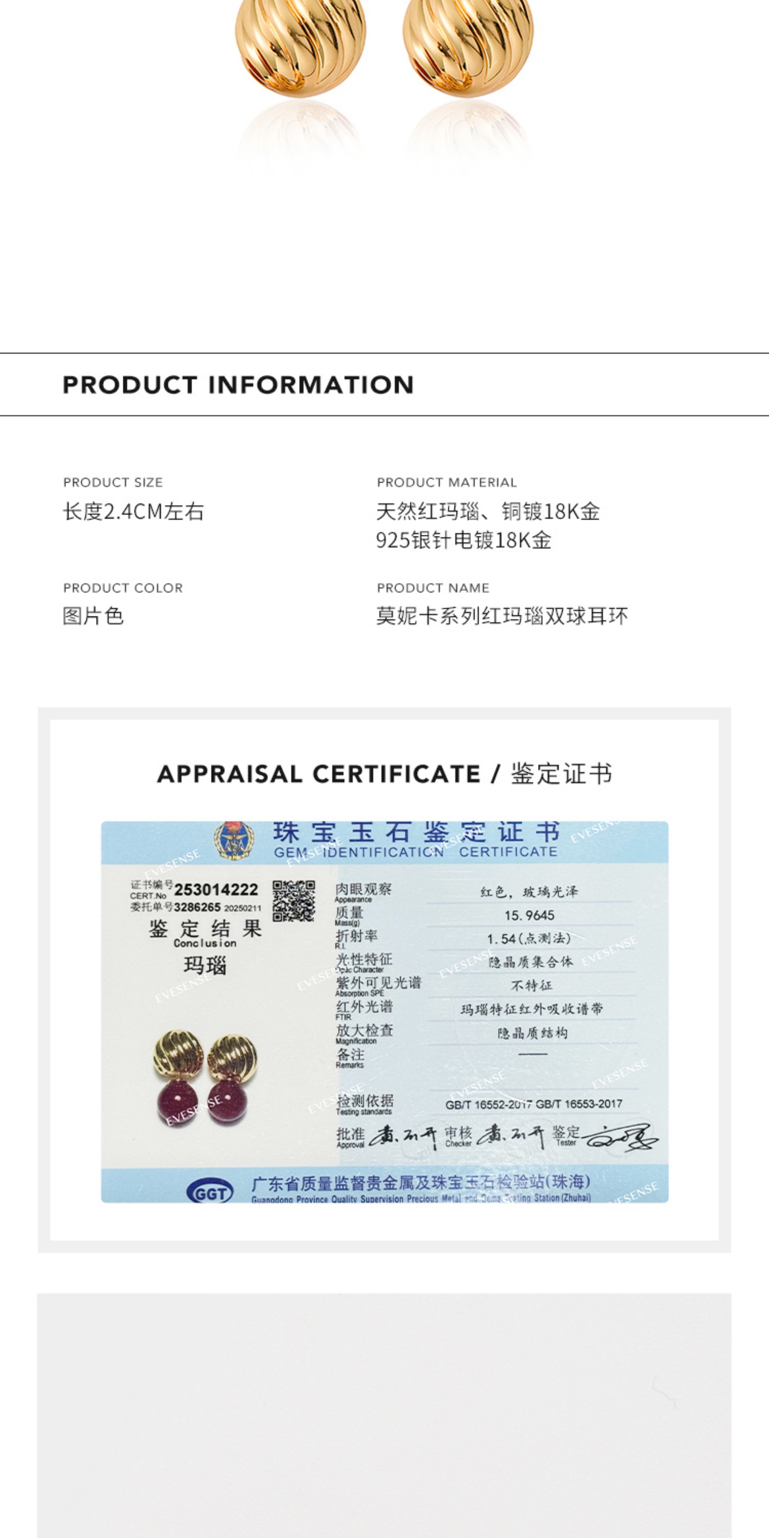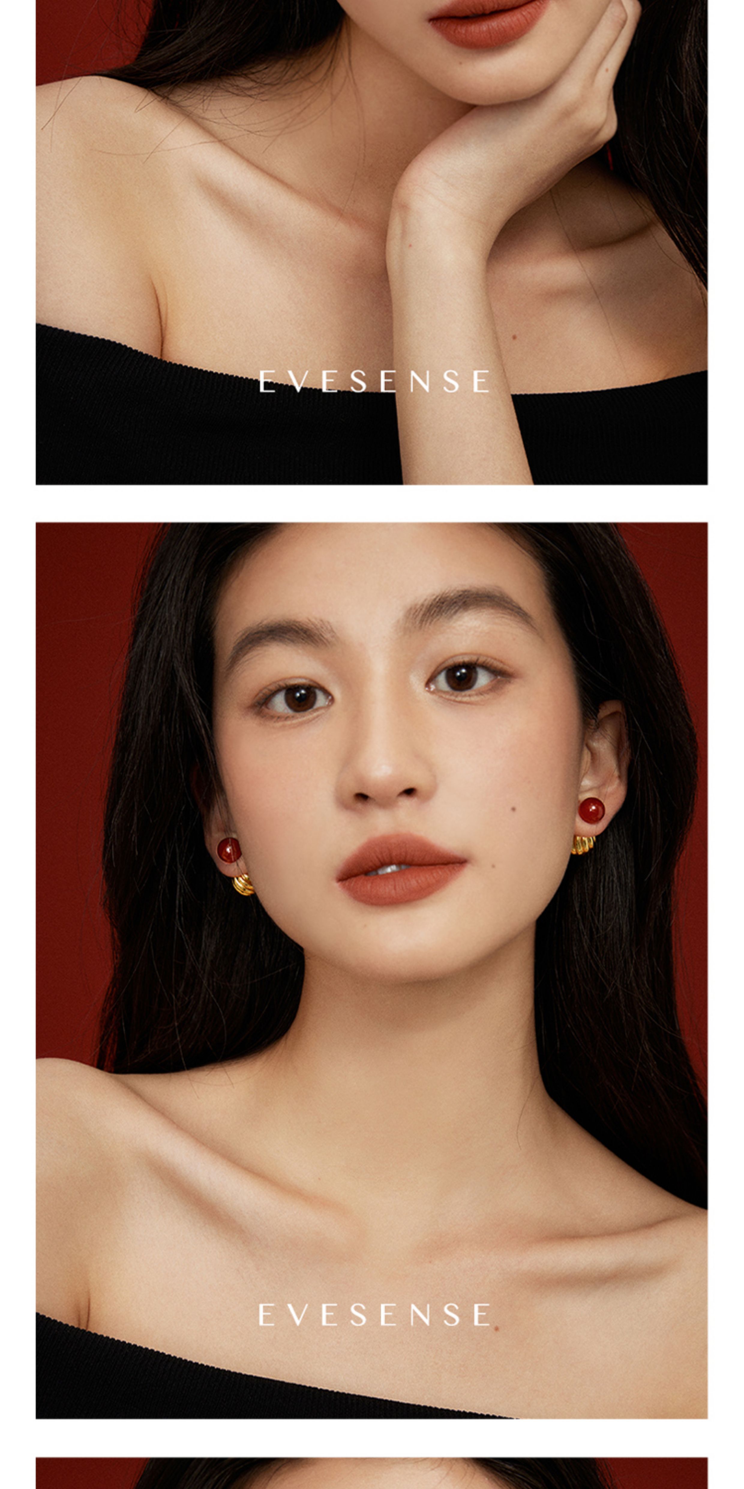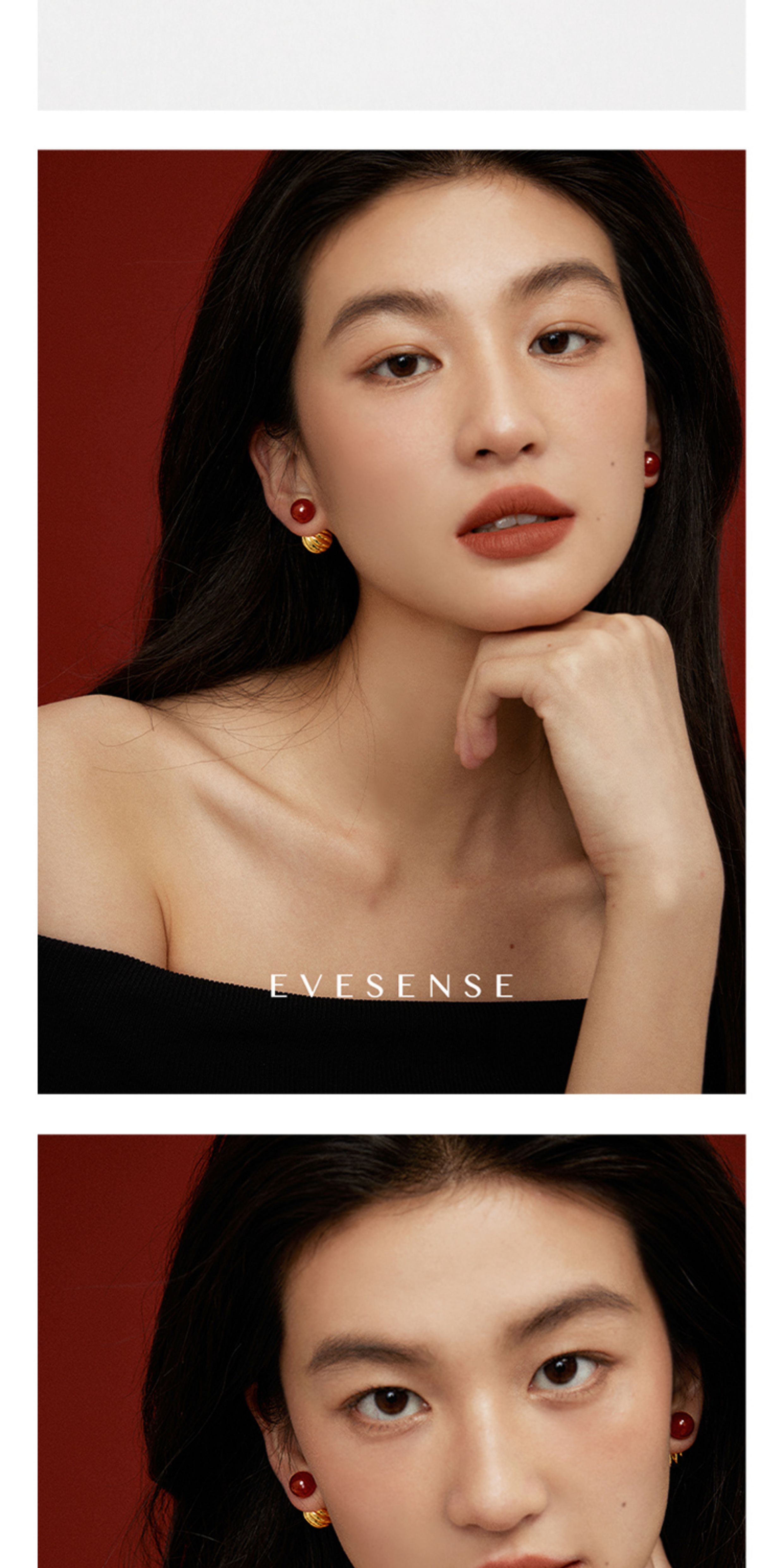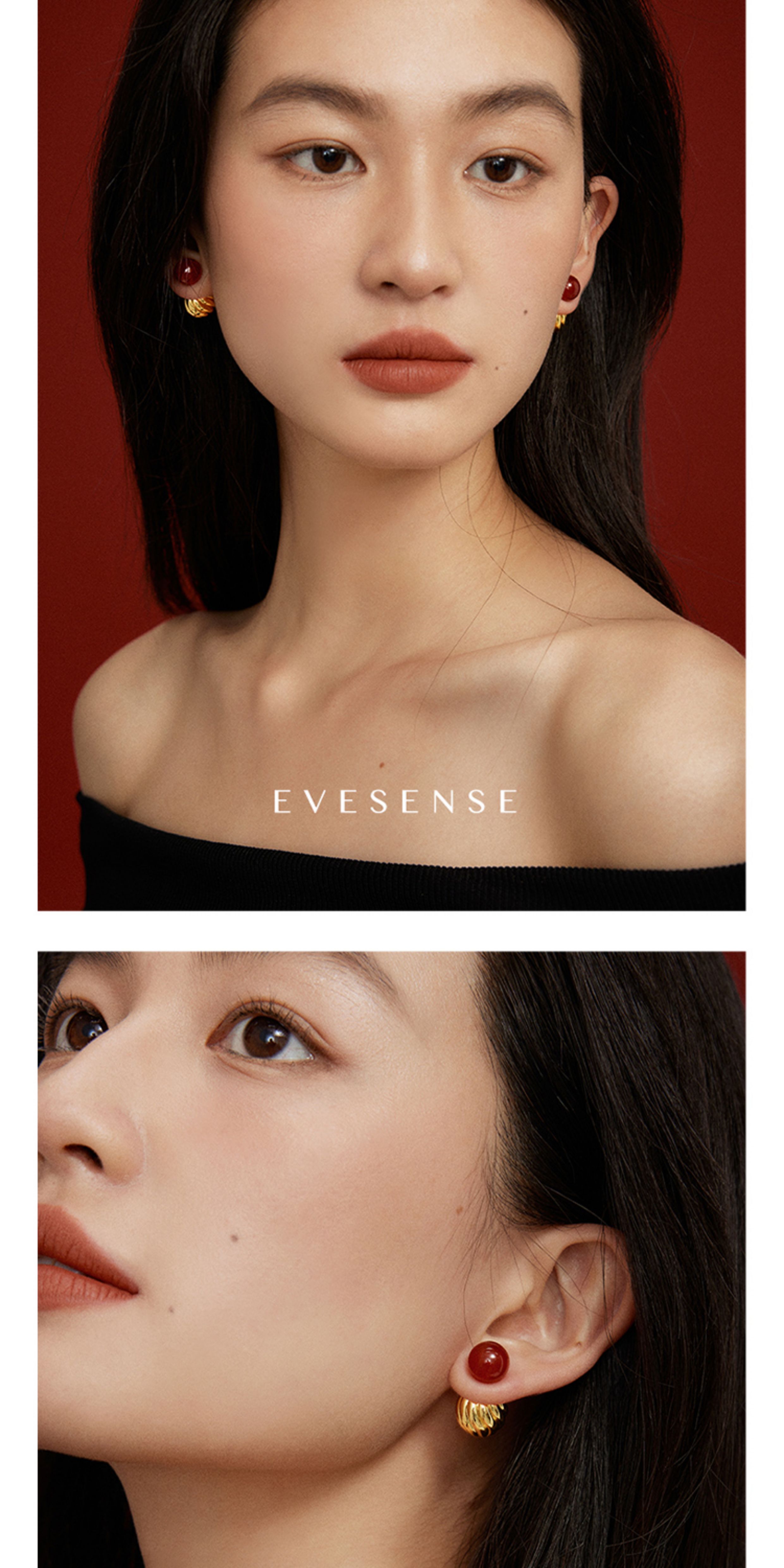 Evesense Monica Series Red Agate Double Ball Earrings, High-End Retro Two-Wear Style, Accessible Luxury New Earrings
