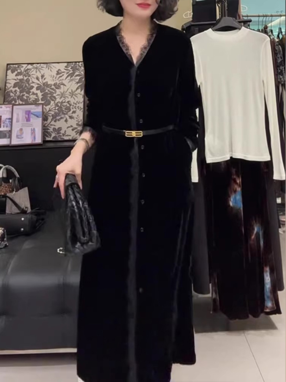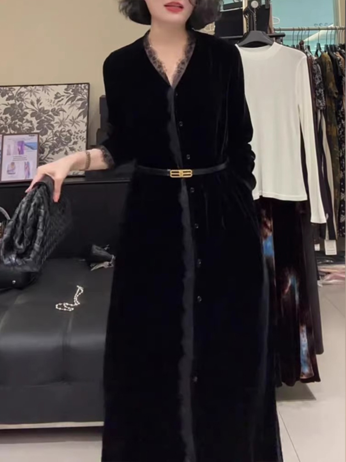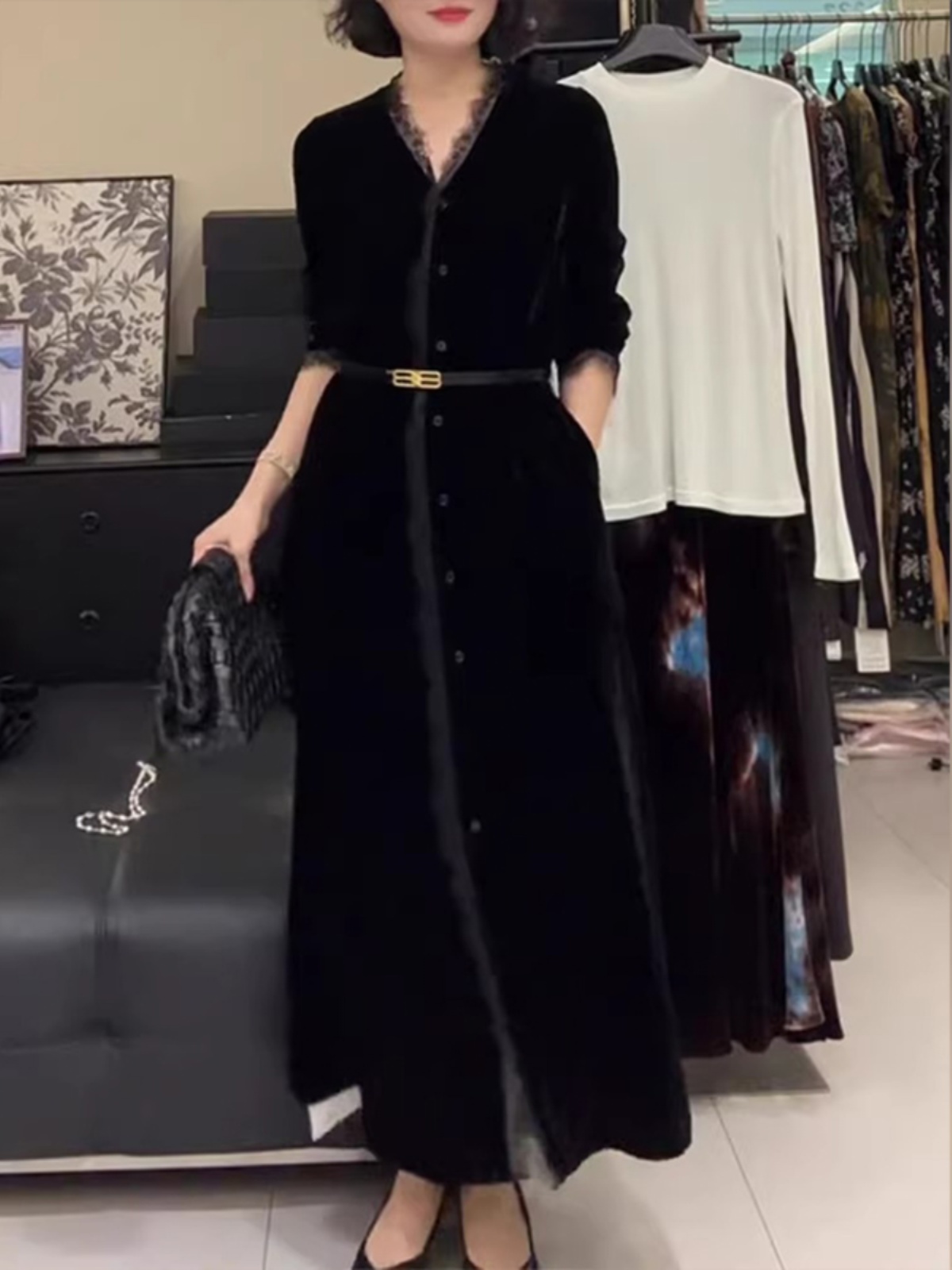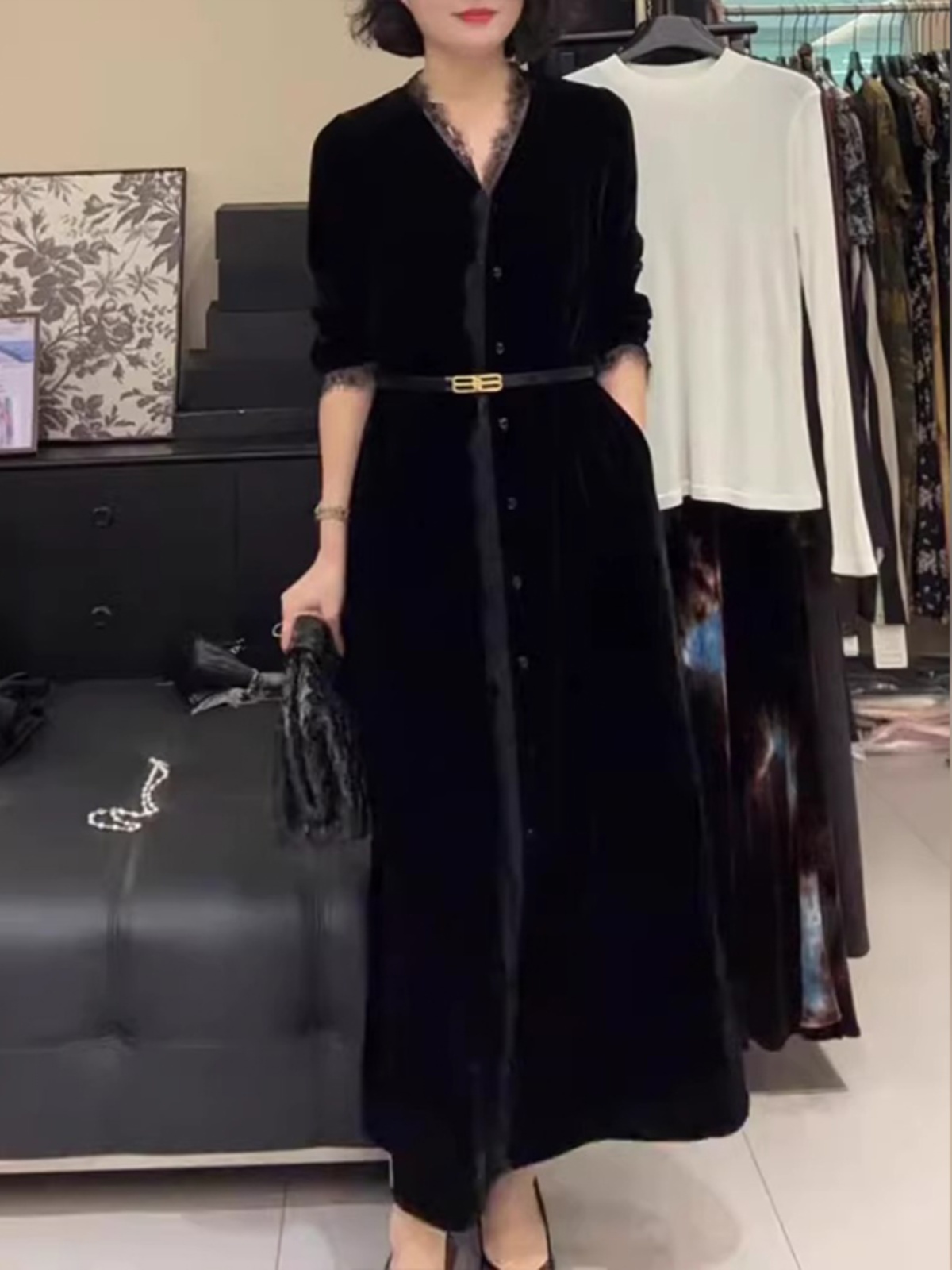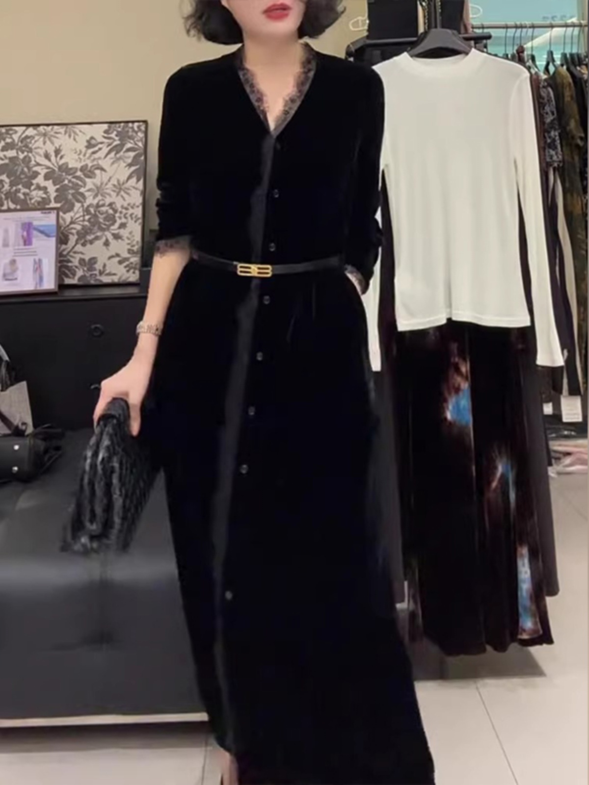 French Black Velvet Dress Autum Women's Clothing 2025 New Accessible Luxury High-End Formal Occasion Slimming Look Skirt