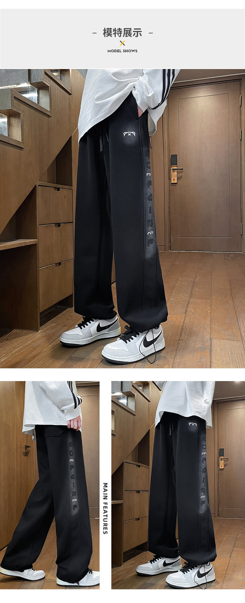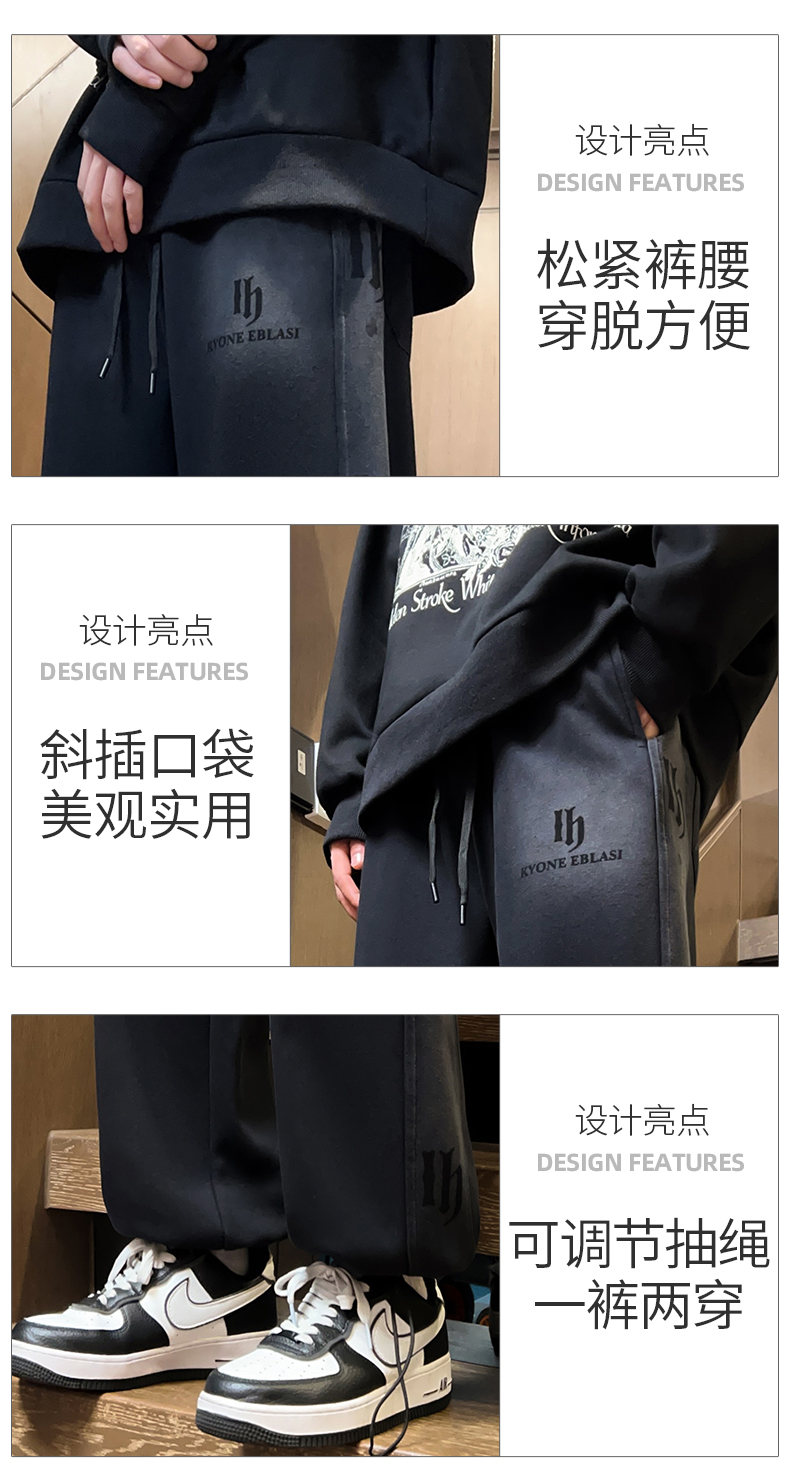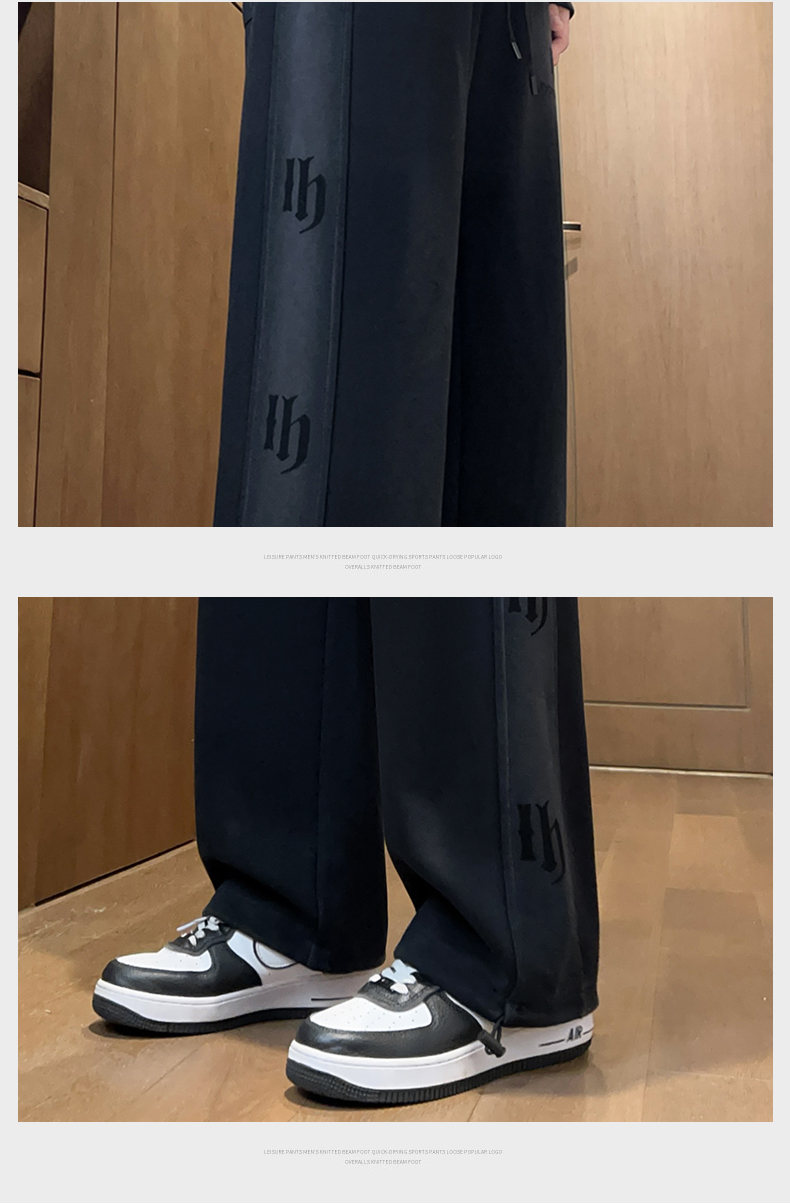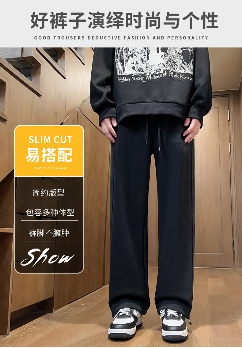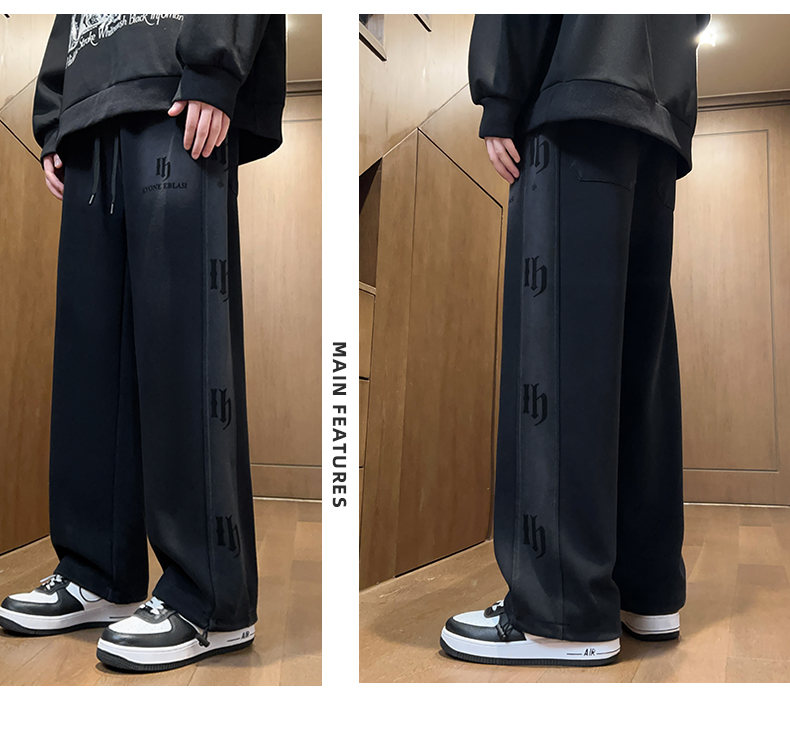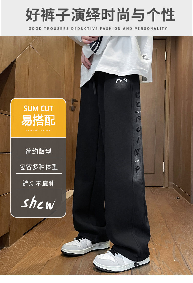 Fleece-Lined Thick Straight-Leg Sweatpants for Boys, Autumn and Winter, Stylish Loose Wide-Leg Joggers for Teenagers and Students