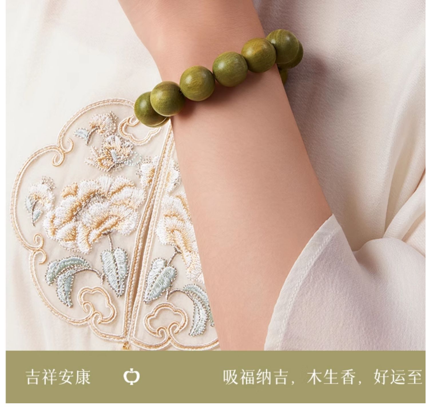 Qingxiangtai Natural Green Sandalwood Bracelet Agarwood Old Mountain Sandalwood Wood for Women and Men, Cultural Play Sandalwood Beads, Buddhist Prayer Beads, Hand-Worn Bracelet