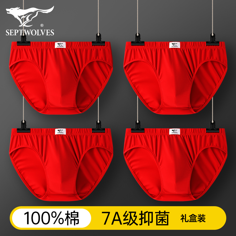 Seven Wolves Natal Year Men's Big Red Panties Men's Briefs Toe Boys' Underwear Men's Cotton Shorts