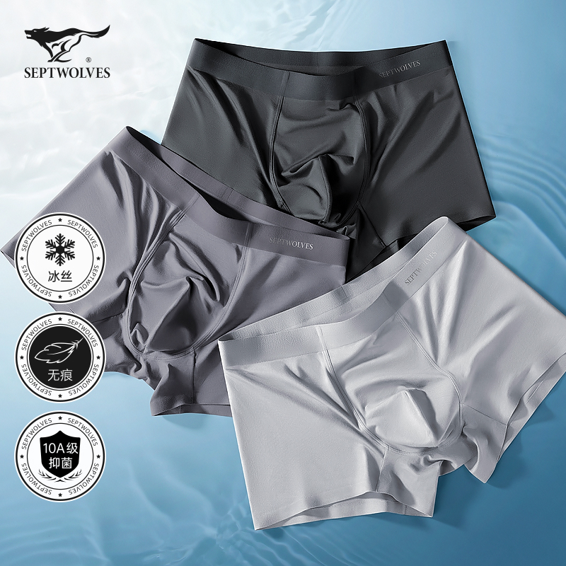 Seven Wolves Men's Underwear Boys' Ice Silk Seamless Boxer Pants Men's Summer Cool Modal Boxer Shorts