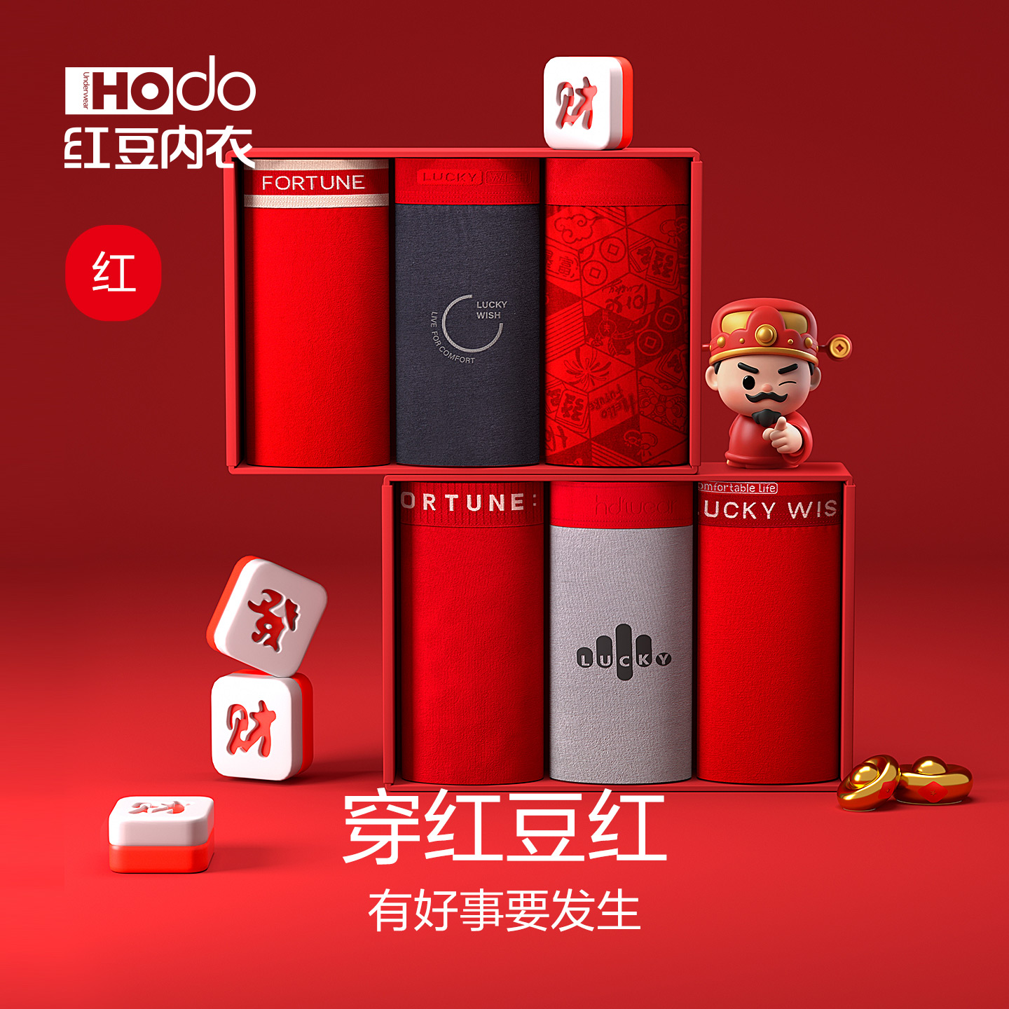 Red bean men's red underwear cotton antibacterial crotch natal year snake horse wedding gift socks boxer shorts gift box