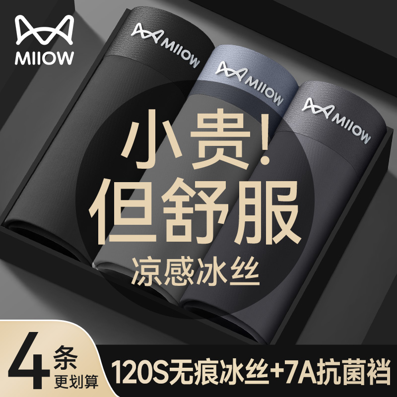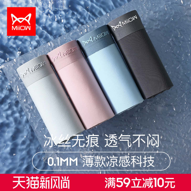 Cat man underwear boys' ice silk men's boxers non-marking antibacterial summer thin breathable plus size boxer shorts toe