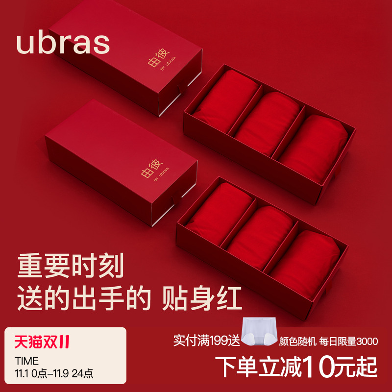 ubras men's underwear women's red natal year wedding modal square cotton couple shorts set