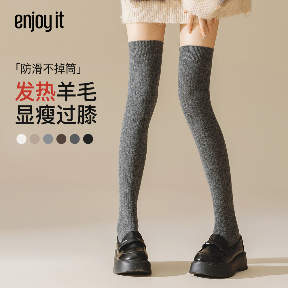 Enjoy it: Heated over the knee socks women's autumn and winter long wool warm socks vertical stripe slimming high thigh socks