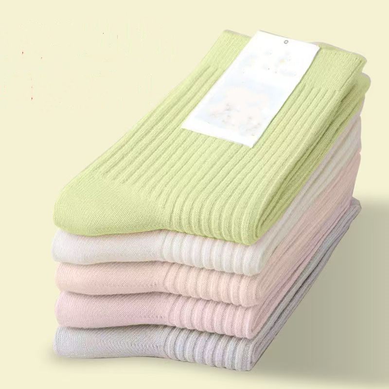 Korean version of women's mid-leg long socks spring and autumn anti-odor sweat casual vertical striped stacked confinement socks pure candy color