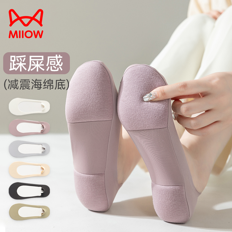 Jiaoxia lady's breathable pumps boat socks non-slip anti-roll edge invisible deep mouth thin moisture-wicking sweat-proof odor does not fall off the heel woman