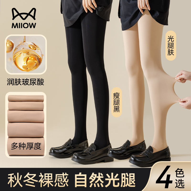 Cat man bare-legged artifact black leggings wear fleece and thickened pantyhose in winter, women's autumn flesh-colored stockings do not fall off