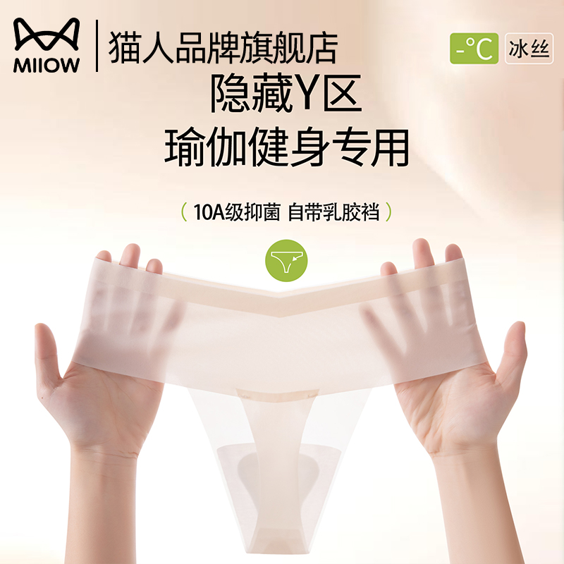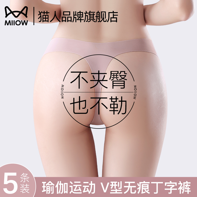 Cat man underwear non-marking antibacterial women's ice silk yoga sports thong ultra-thin low-rise breathable pure cotton crotch does not clamp the buttocks