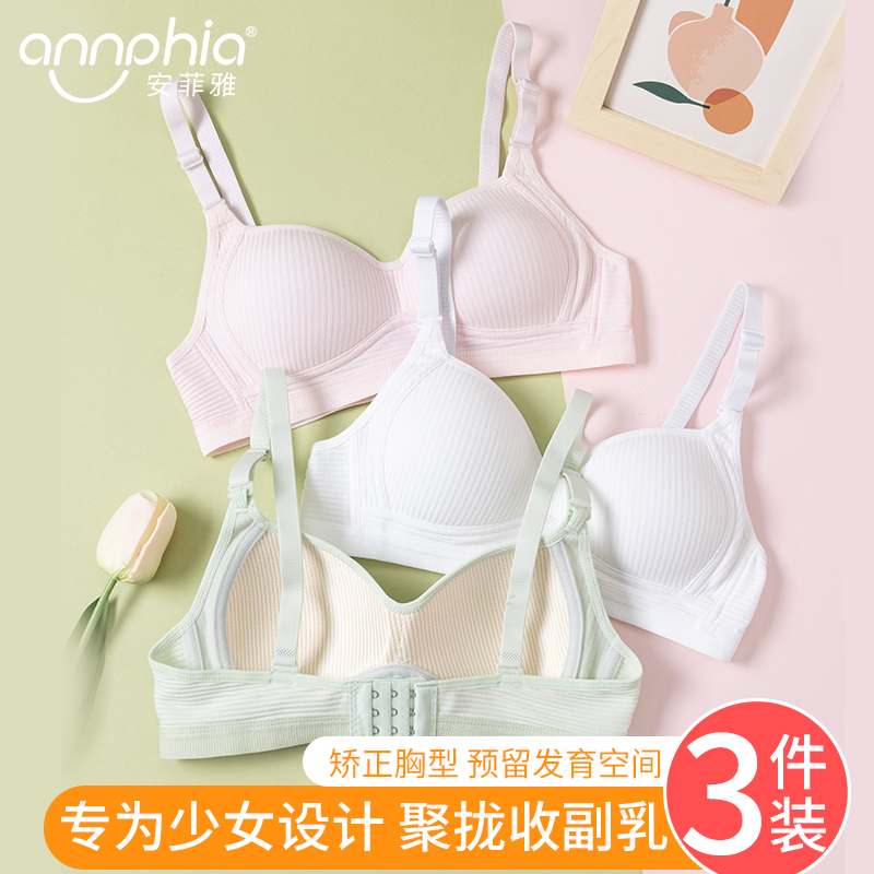 Anfia high school student girl underwear female junior high school student adolescent development period pure cotton shaped cup adjustment bra