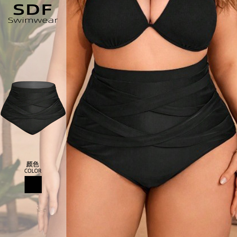 European and American style black high-waisted triangle swimming trunks, women's single piece plus size to cover the belly, slimming and anti-naked swimming shorts to soak in hot springs