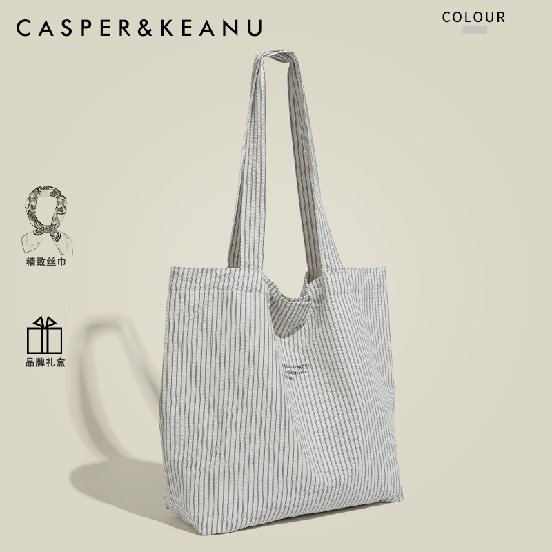 CASPER & KEANU Korean Lazy Wind Large Capacity Tote Bag 2025 New Summer Commuter Striped Canvas Bag