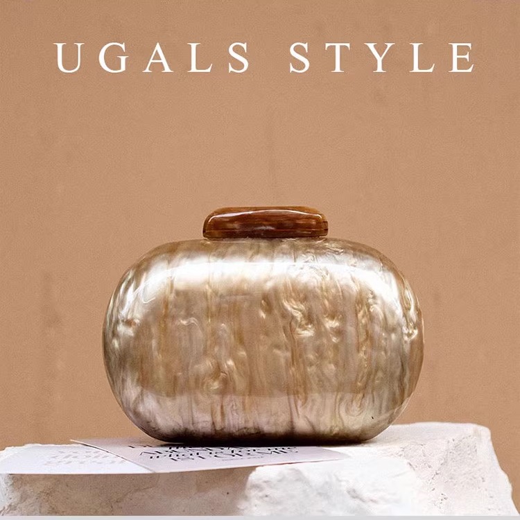 UGALS French Watercolor Marble Acrylic Clip Bag Banquet Oval Shell One Shoulder Clutch Crossbody Bag