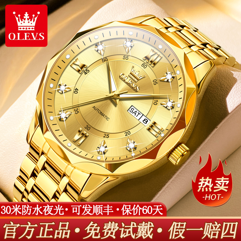 Swiss 18k gold men's watch, men's mechanical watch, business genuine brand, automatic waterproof watch, top ten