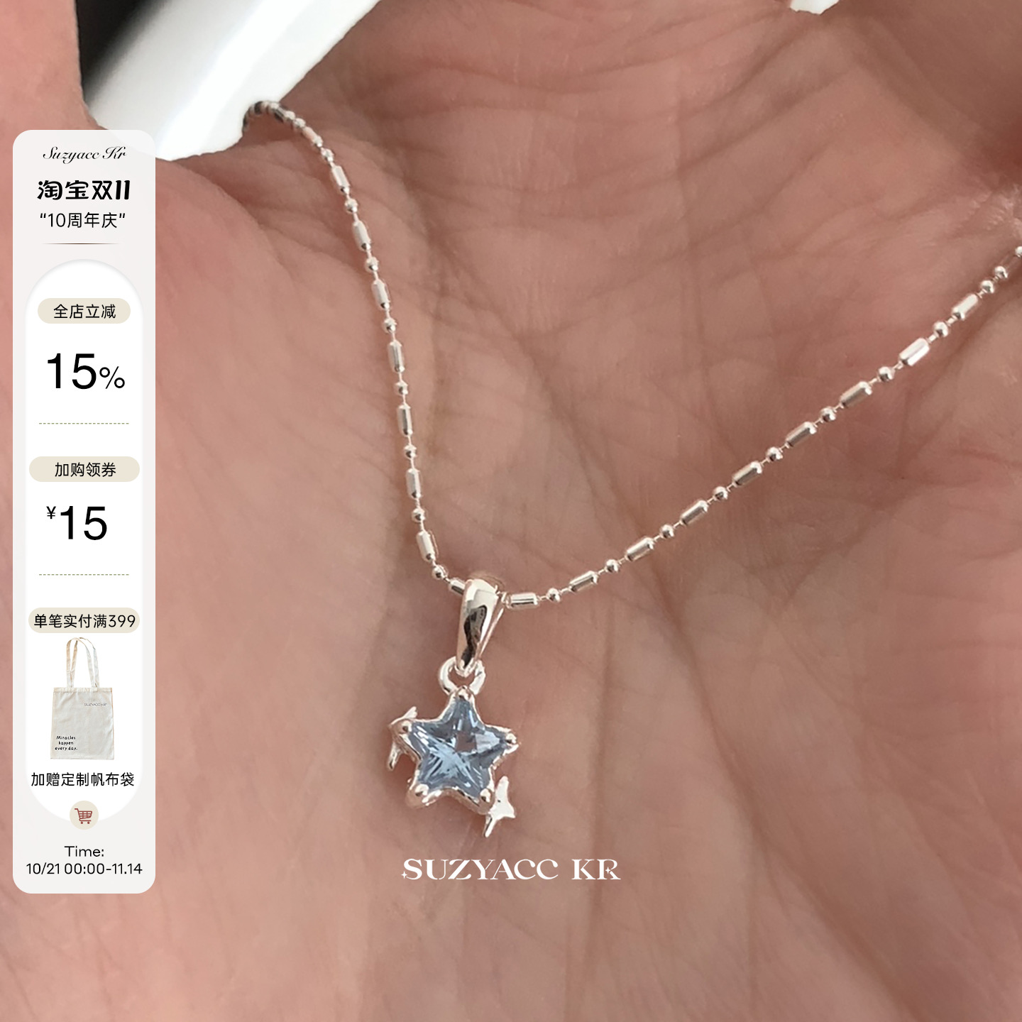 suzyacc kr original design sterling silver blue star necklace 2024 new light luxury niche high-end collarbone chain