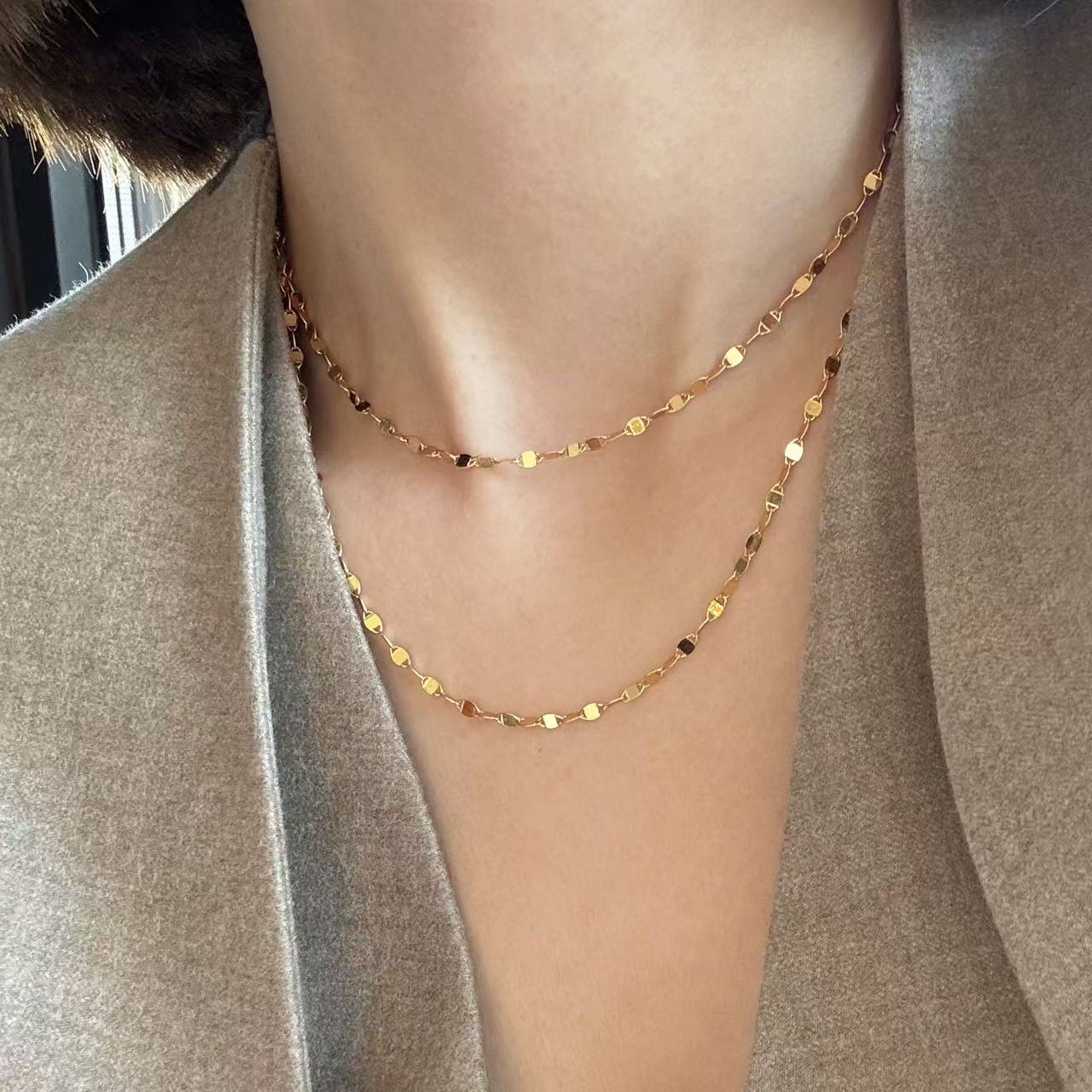 mattib simple plain chain versatile fashion high-end new light luxury French niche clavicle chain women's stacked necklace