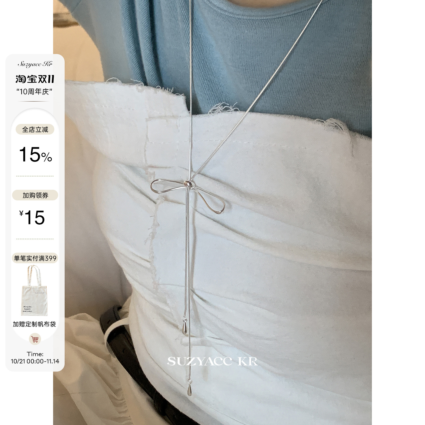 suzyacc kr sterling silver bow draw sweater chain 2024 new simple niche high-end versatile necklace