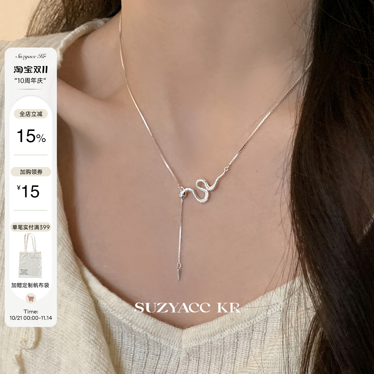 suzyacc kr snake year limited shining tassel sterling silver zodiac snake spirit snake collarbone chain niche design necklace for women