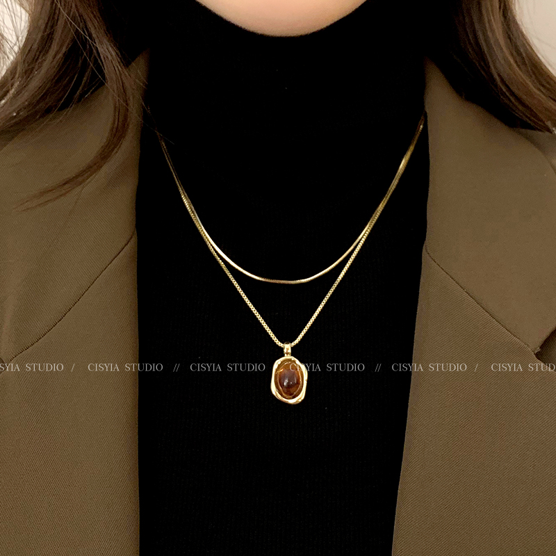 Explosive amber layered gold sweater necklace women's spring accessories light luxury luxury niche tiger's eye sweater chain