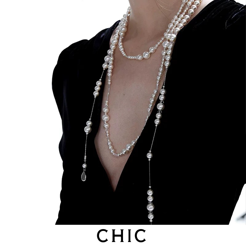 Wang Sulong's original long broken pearl necklace women's multi-layered layered necklace baby's breath retro long necklace