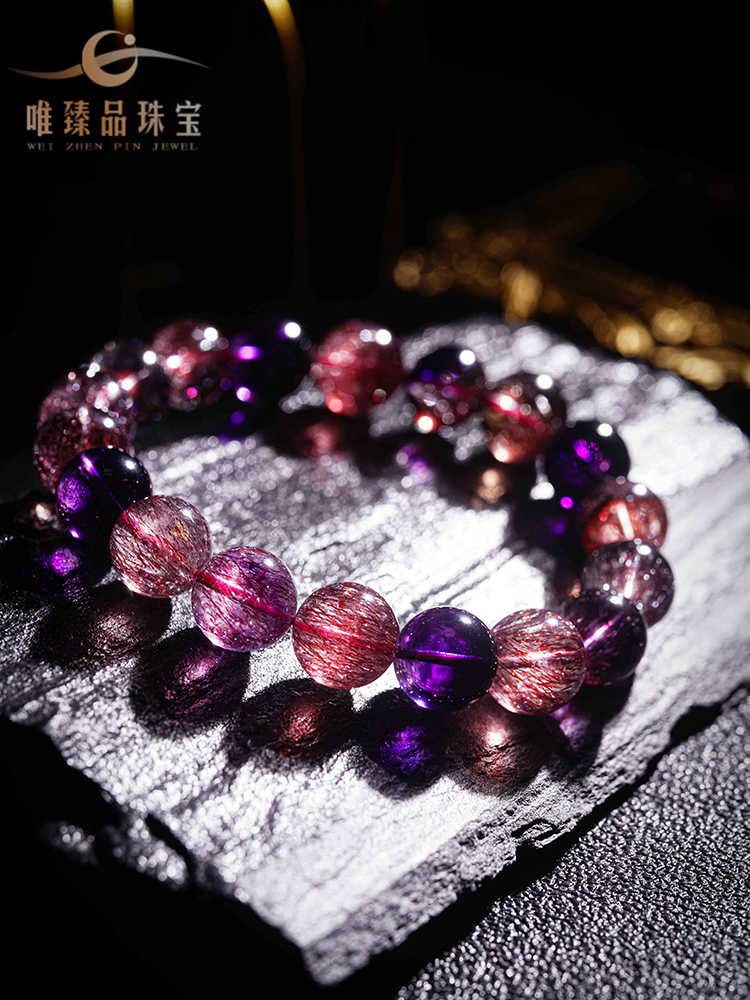 Weizhen Jewelry Natural Blackcurrant Super Seven Bracelet Full Mine Three-Wheel Backbone Crystal Purple Red Super Seven Crystal Bracelet