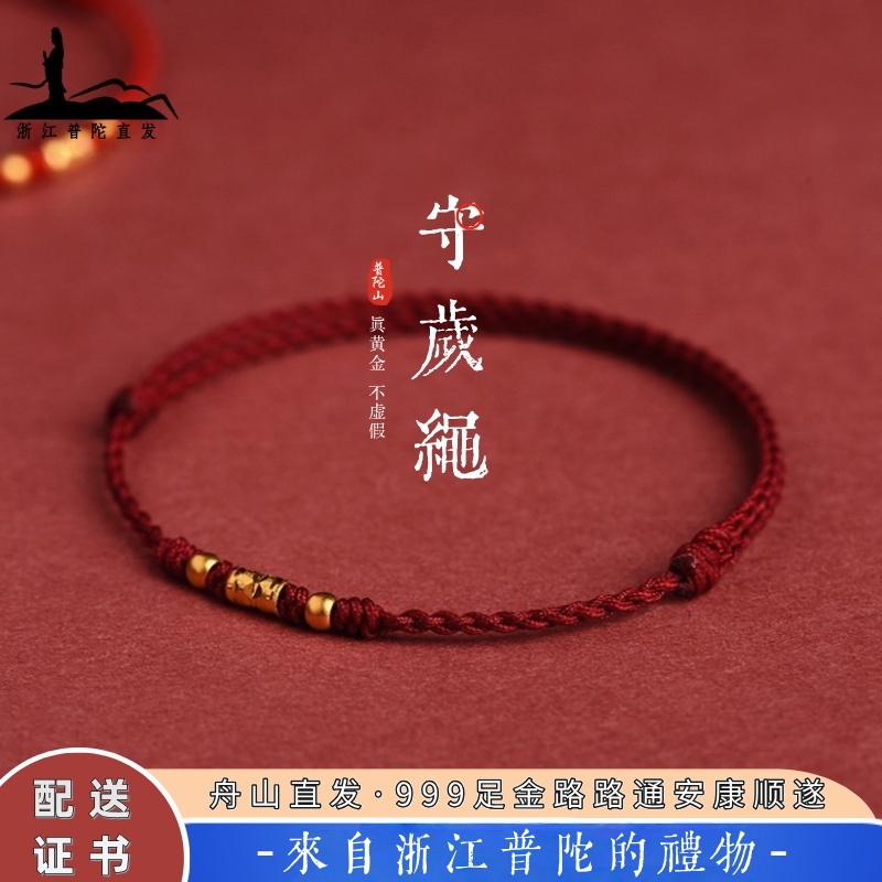 Putuo Mountain Pure Gold Broken Gold Red Rope Bracelet Men's Women's Natal Year Ping An Gold Transshipment Hand-woven Bracelet