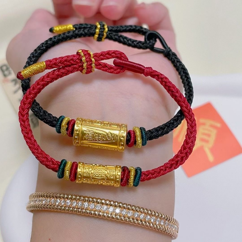 999 pure gold six-character recitation cylinder mantra bracelet gold is in need of a transfer bead red rope natal year couple model