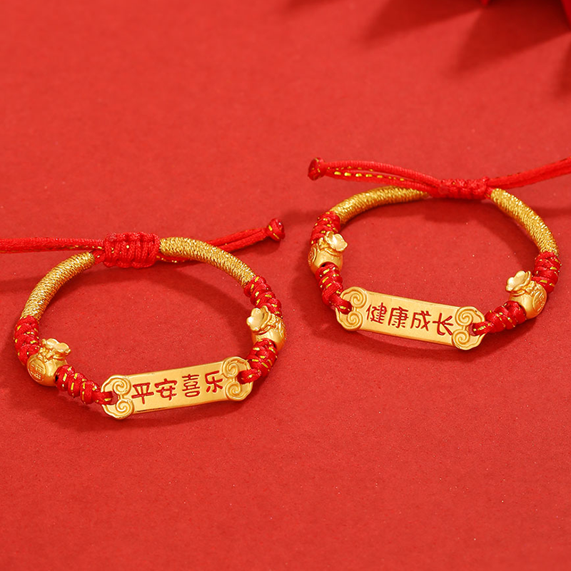 Baby gold bracelet red rope braided rope pure gold 999 transfer beads one year old baby full moon gold ornament solid gold gift