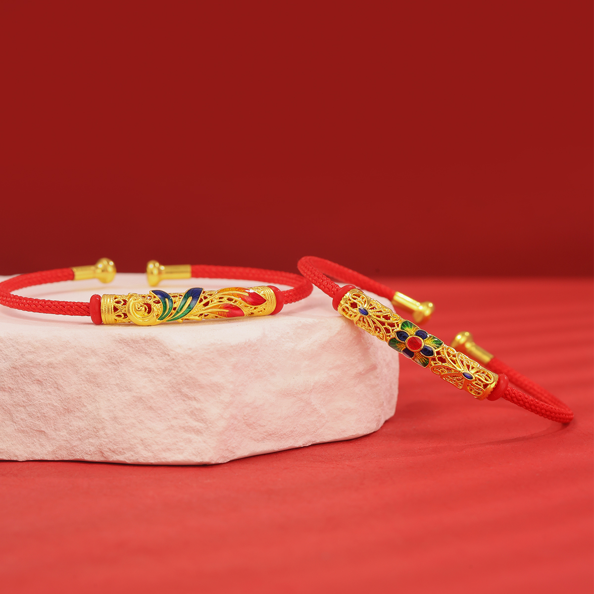 Chow Tai Fook SOINLOVE Powder Gold Ten Mile Red Makeup Lotus Koi Peace Buckle Gold Bracelet Rope VR1616