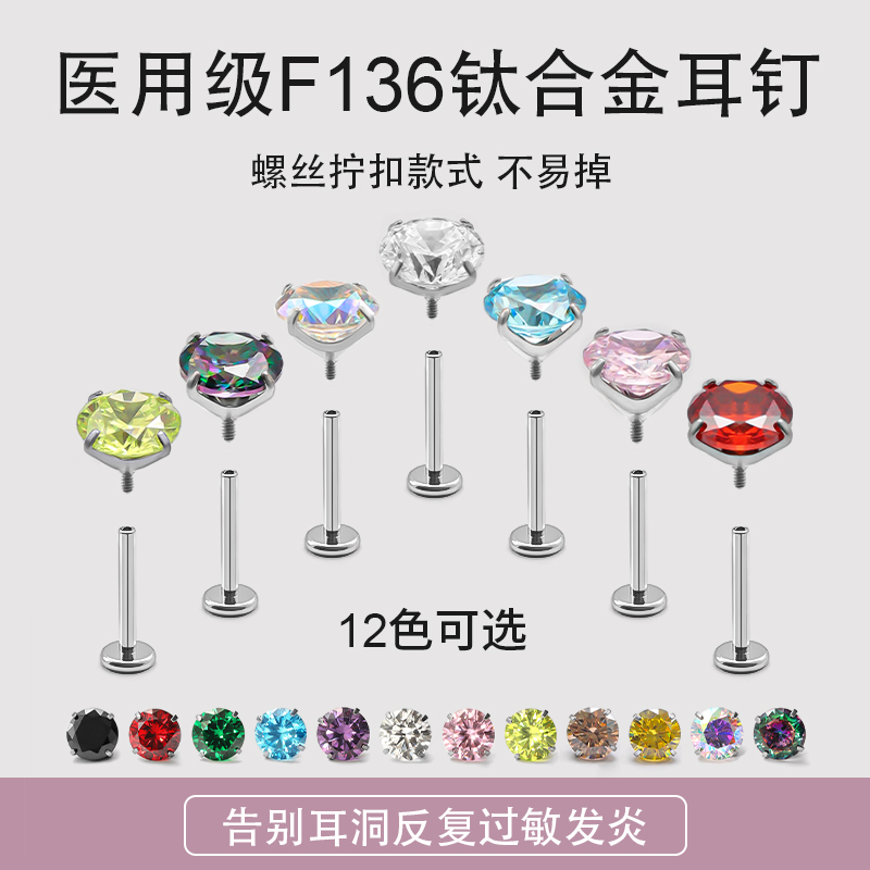 Medical titanium alloy earrings for ear piercings mini drill bone studs titanium steel hypoallergenic cochlear studs flat sole no-remove earrings