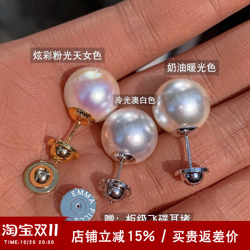 999 sterling silver Australian white round large pearl stud earrings for women 2025 new explosive light luxury high-end earrings earrings