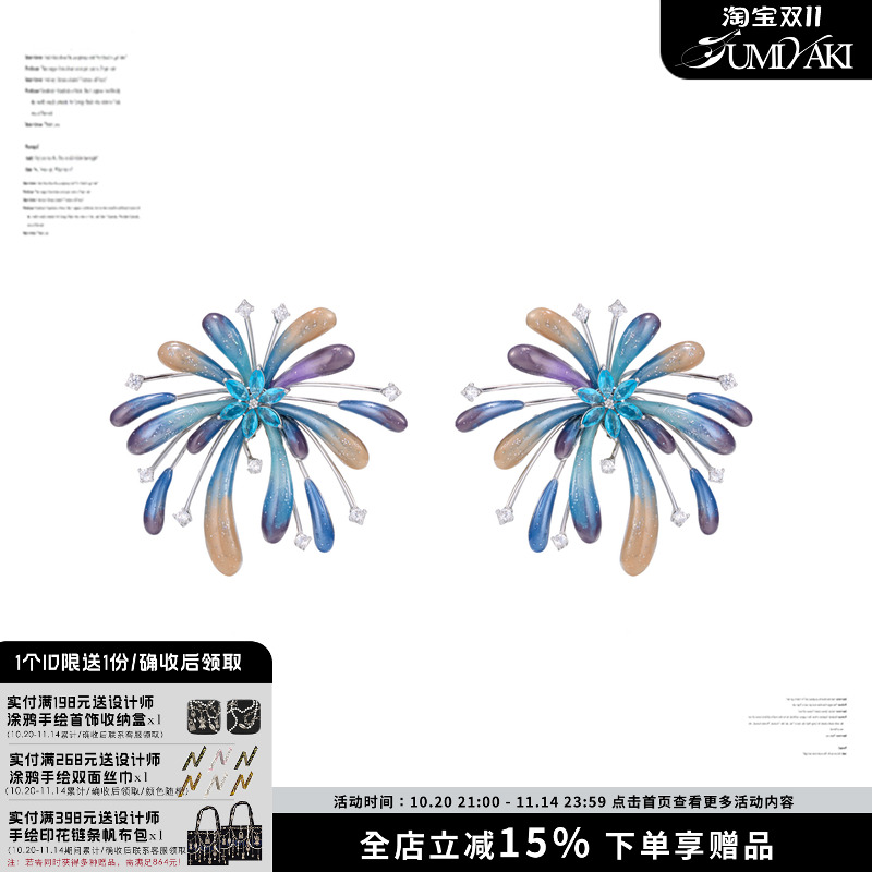 SUMIYAKI Smoke Mars Hour Earrings Pure Handmade Fireworks Stud Earrings Niche Earrings Ear Clips No Ear Hole Girl Gifts