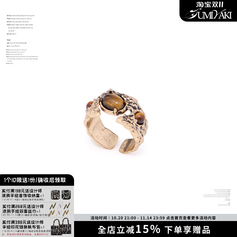 SUMIYAKI vintage Yadan style tiger's eye stone ring women's opening ring niche autumn and winter design opening ring women
