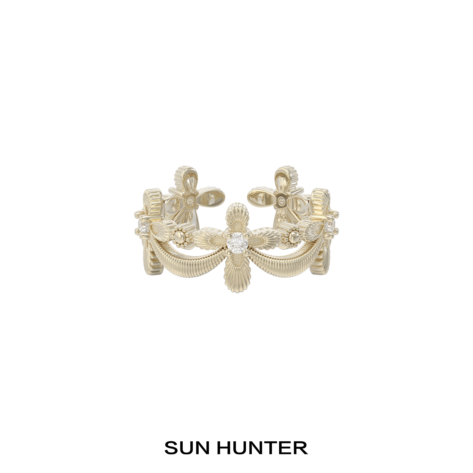 Sanheng SUN HUNTER "Lace Shimmer" original cross full circle ring light luxury French vintage jewelry