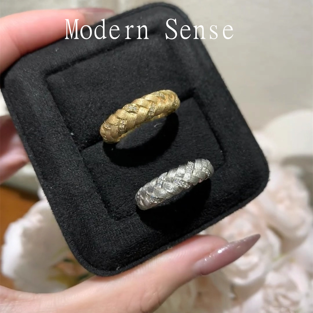 Modern Holy Jewelry Wheat Ear Series S925 sterling silver ring brushed braided twist set with diamonds high-end light luxury index ring