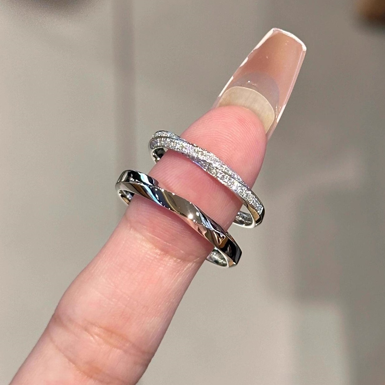 Niche design ring collection 925/999 sterling silver pearl tail ring index finger ring for men and women couple opening ring