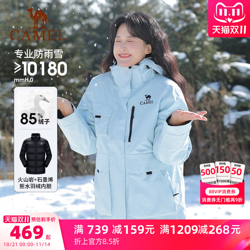 Camel 2025 New Jacket Jacket Women's Outdoor Waterproof Windproof Casual Hiking Detachable Short Mountaineering Suit