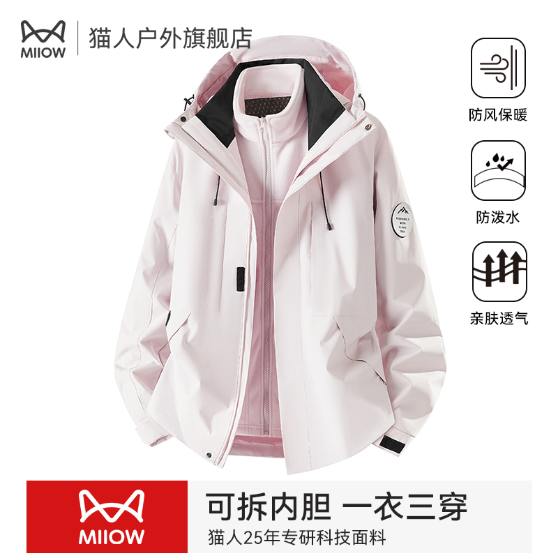 Cat Man Charge Softshell Clothing Women's 3-in-1 2025 New Autumn and Winter Outdoor Thickened Windproof and Waterproof Hiking Jacket