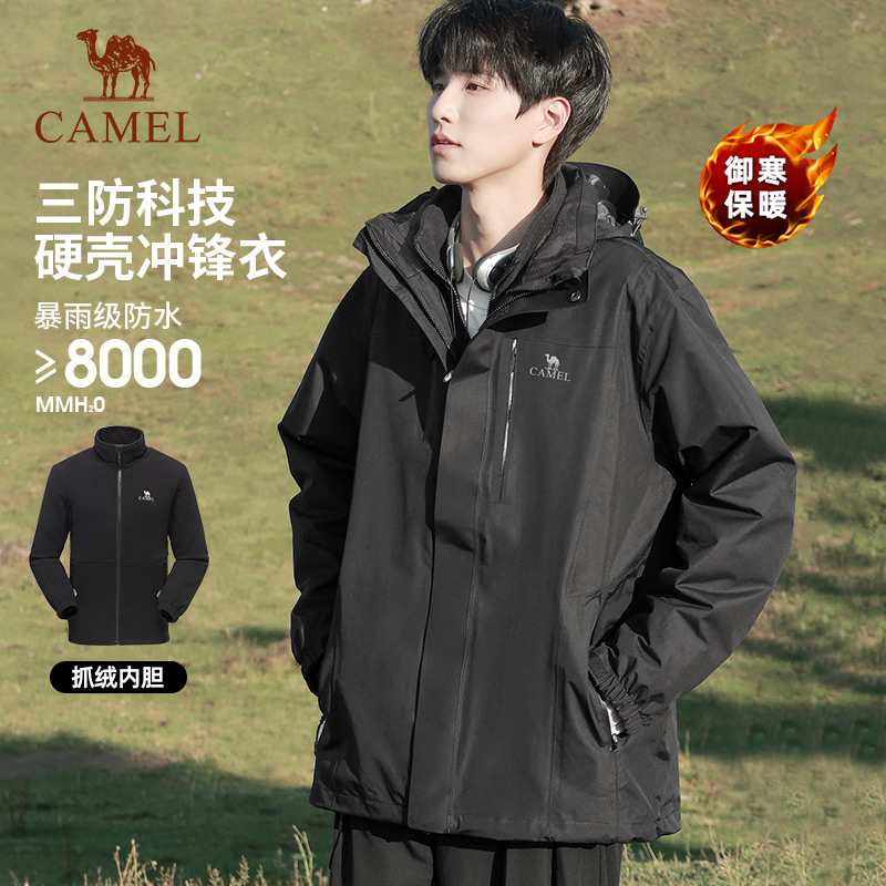 Camel Outdoor 3514 Hard Shell Jacket 3-in-1 Men's 2025 Fall/Winter Windproof Travel Abrasion Resistant Hiking Jacket