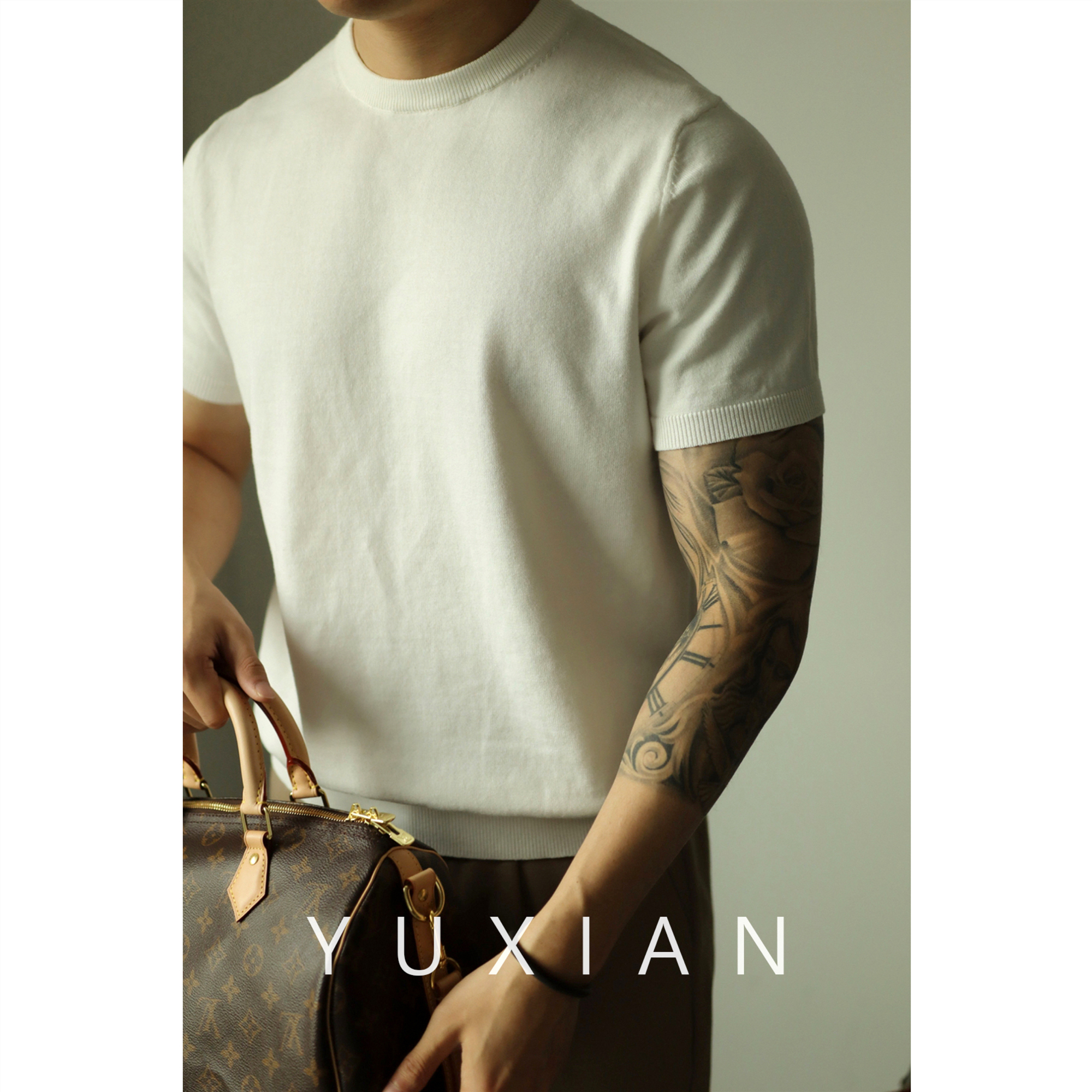 YUXIAN cotton yarn knitted men's short-sleeved T-shirt crew neck solid color base simple commuting casual business spring and summer