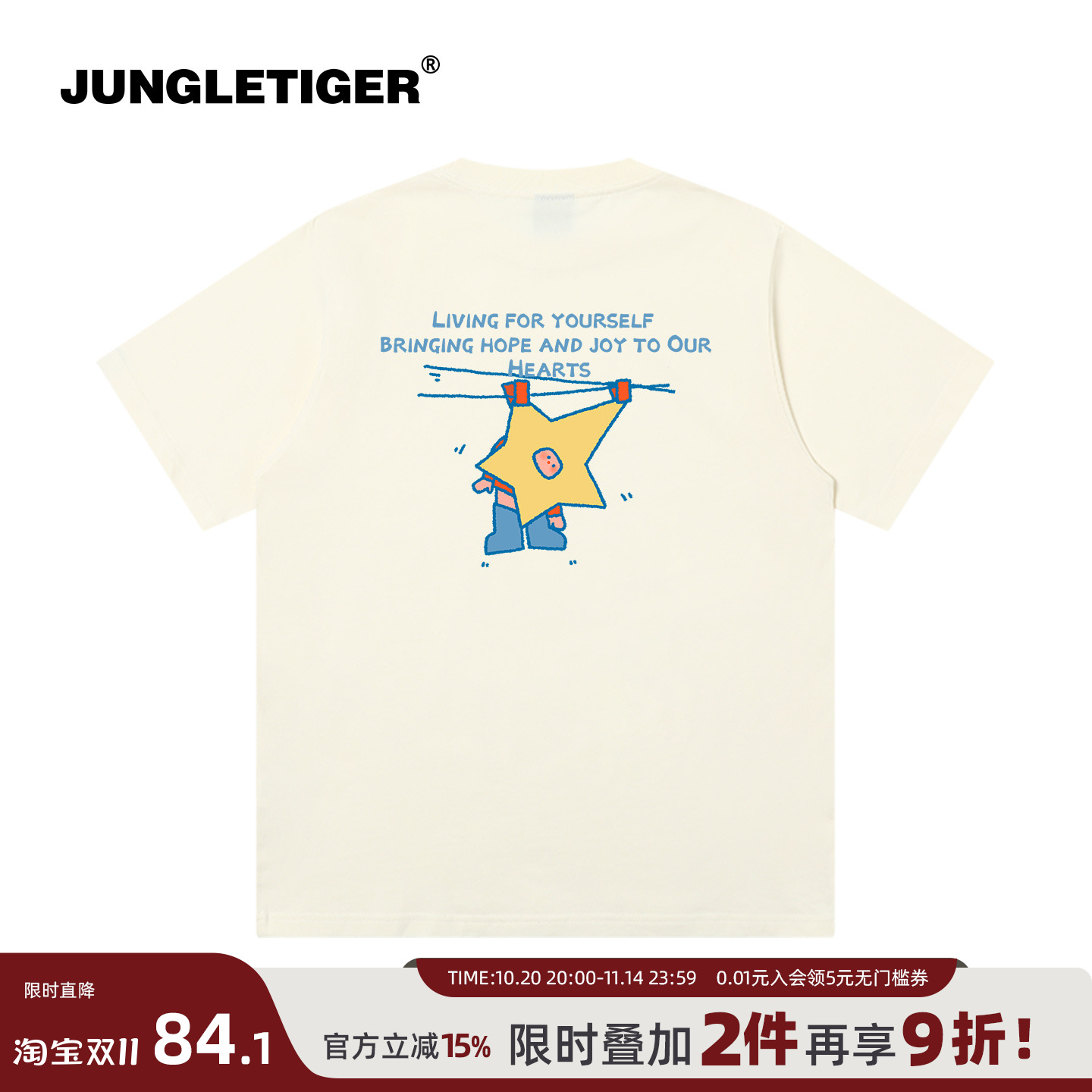 Jungle tiger & illustrator joint sun off the mood couple short-sleeved men's summer original design star T-shirt