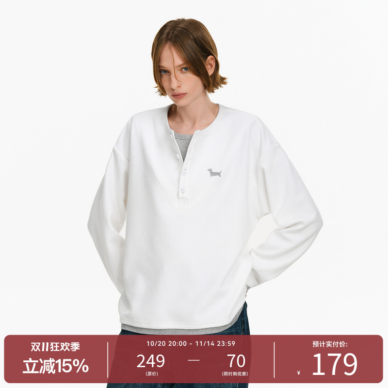 PCLP embroidered puppy henry collar long sleeve spring and autumn trendy brand versatile loose fake two-piece T-shirt couple top
