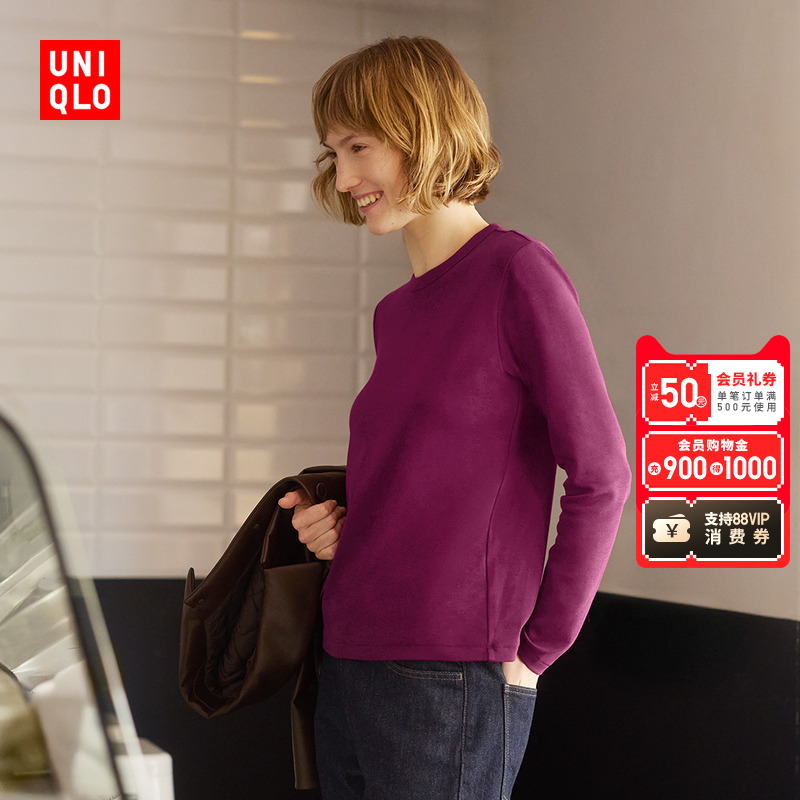 Uniqlo Women's Silky Stretch Cotton Crewneck T-Shirt/Long Sleeve Basic Fit with the new 480869