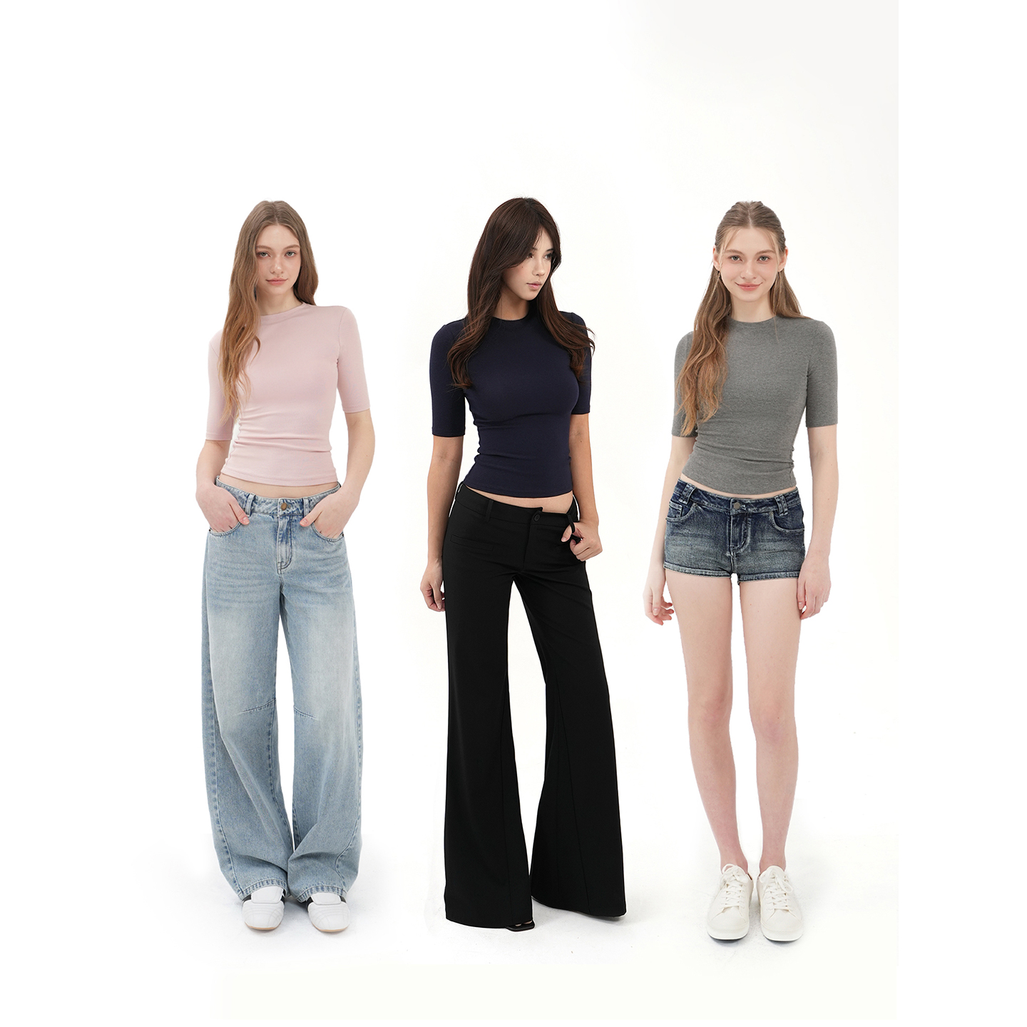 Jim Kennet basic three-tone crew neck mid-sleeve slim straight shoulder T-shirt